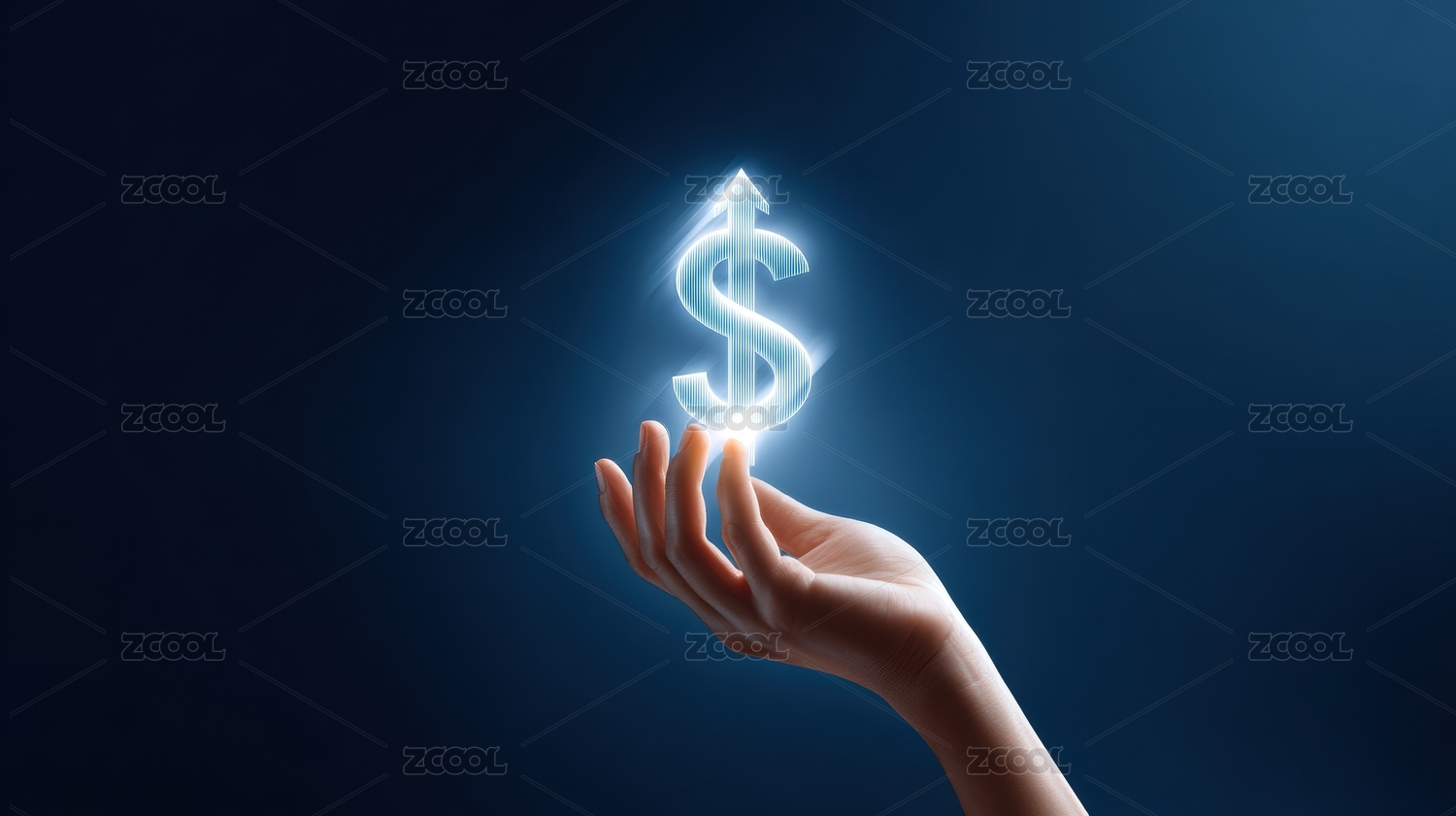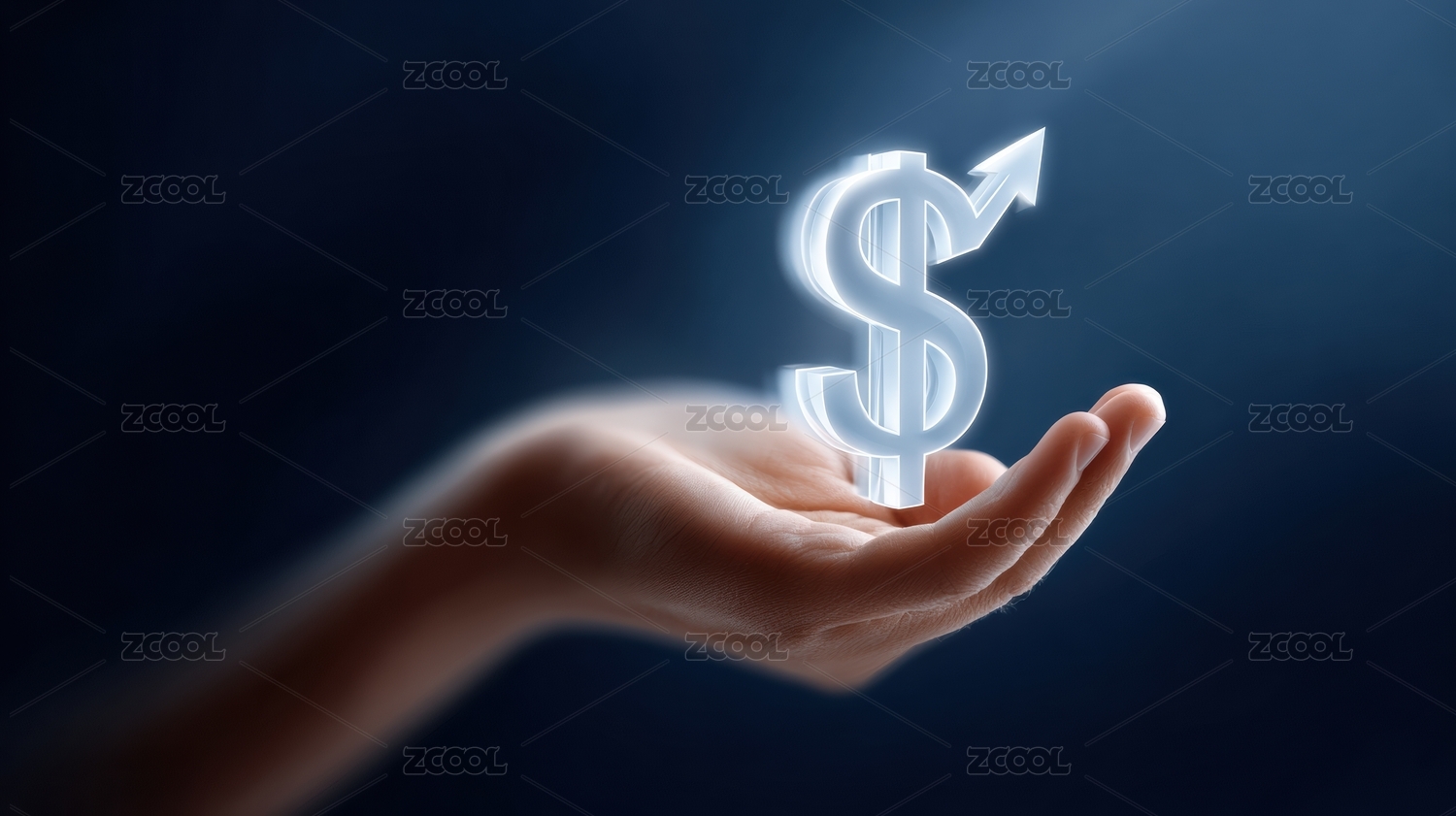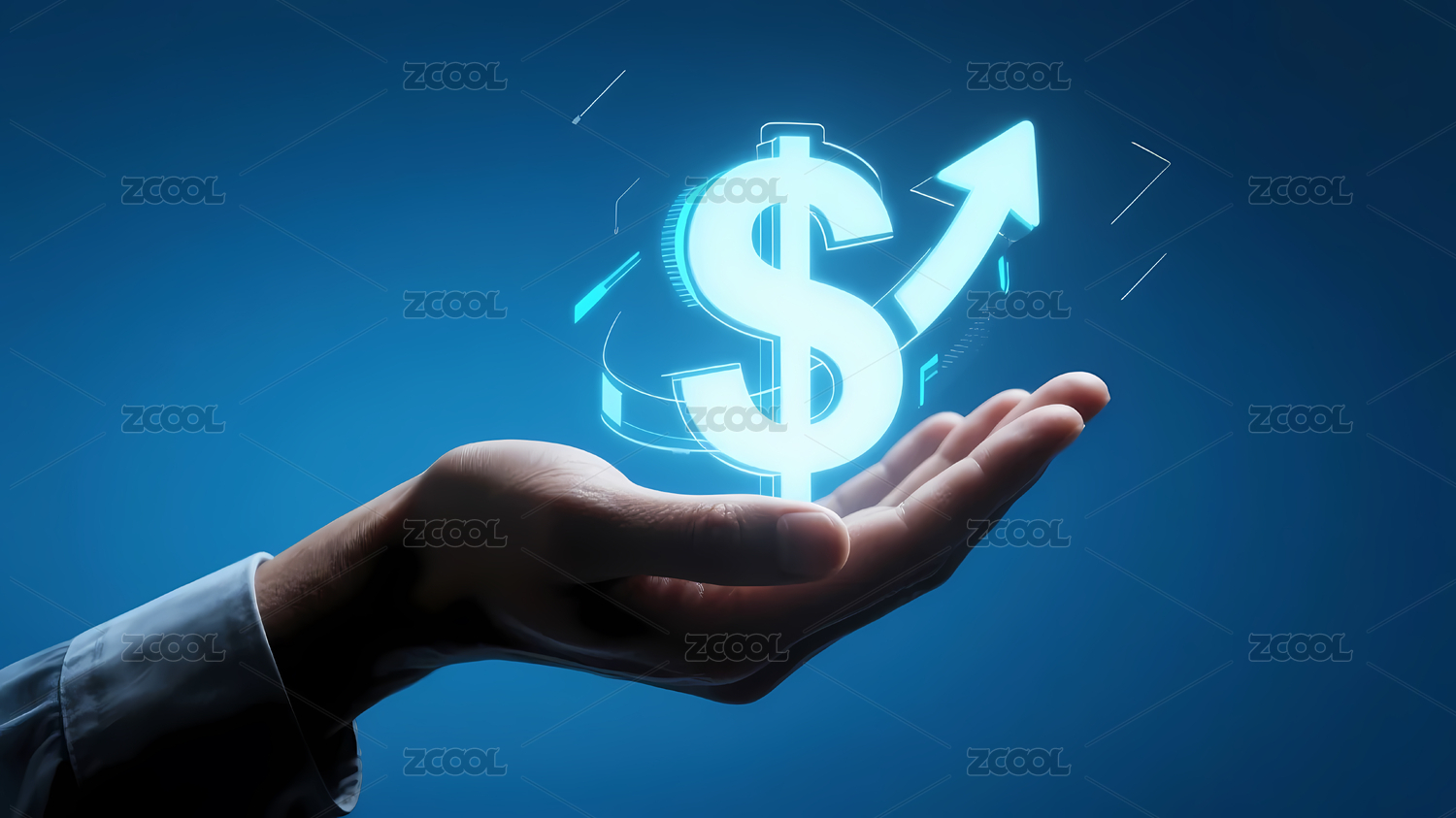 一个人用手画着向上的箭头搭配美元符号体现经济金融概念