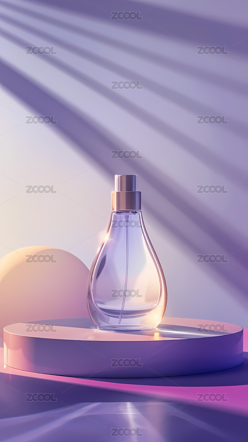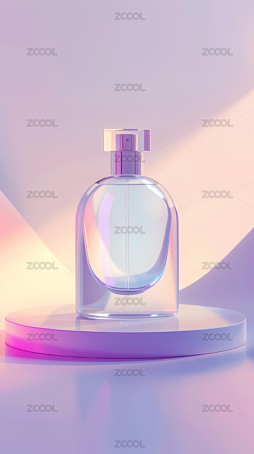 粉蓝光影下的香水瓶,呈现高端时尚感