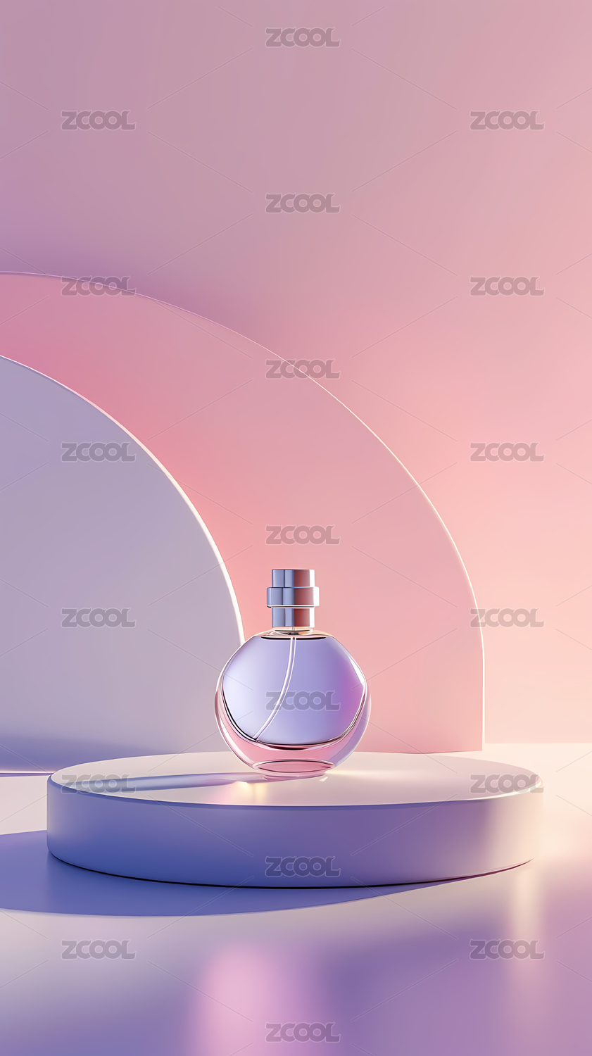 香水瓶展示在柔和渐变背景下