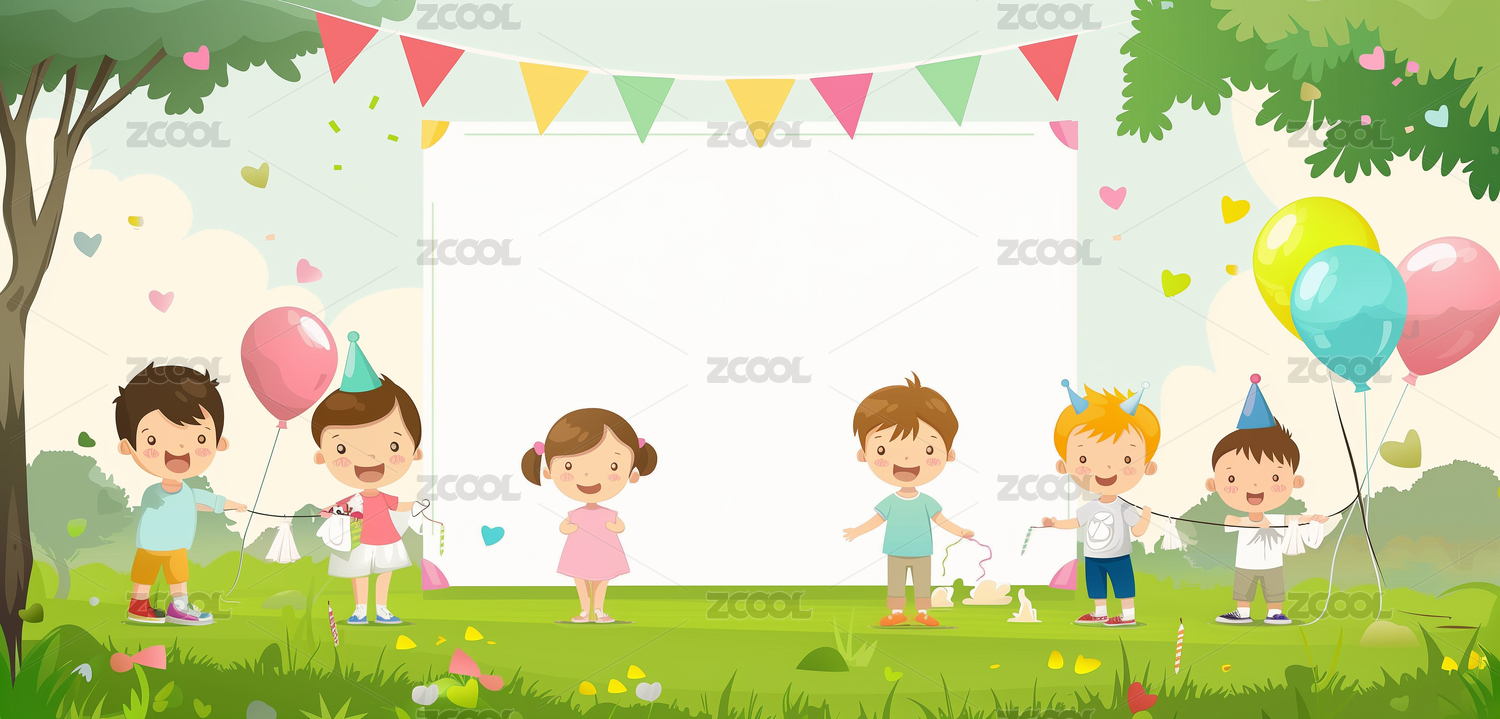 六一儿童节小孩玩气球插画快乐童年活动海报
