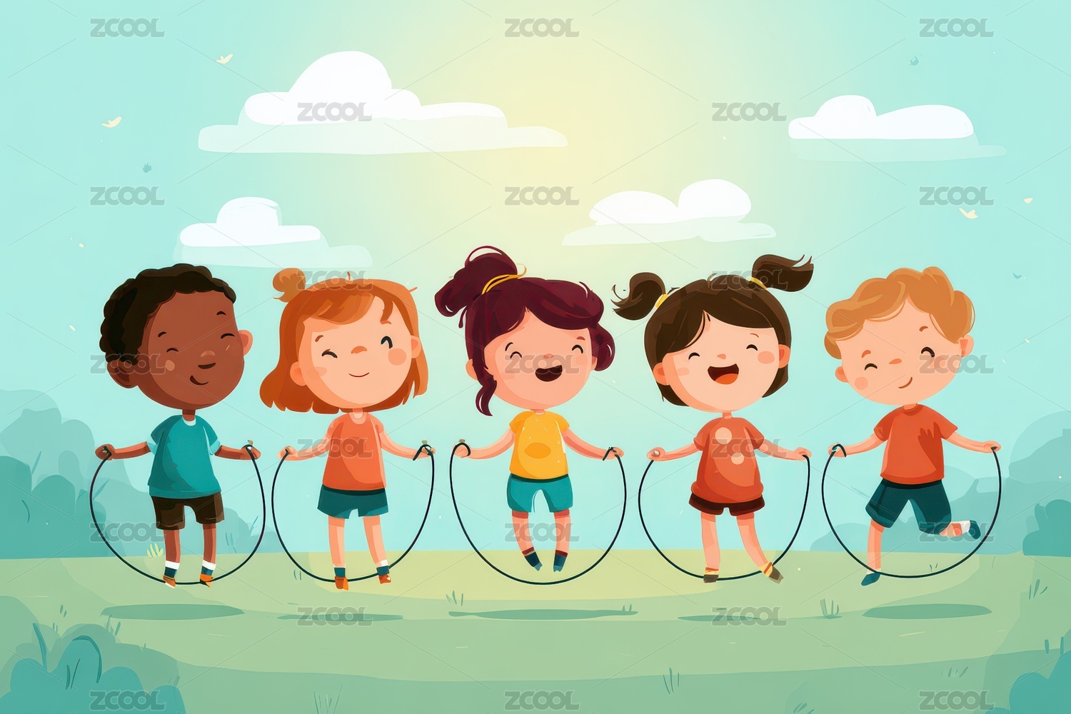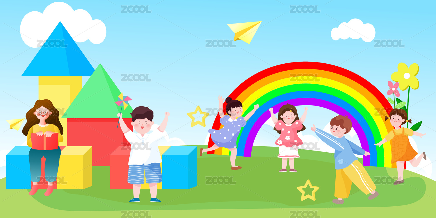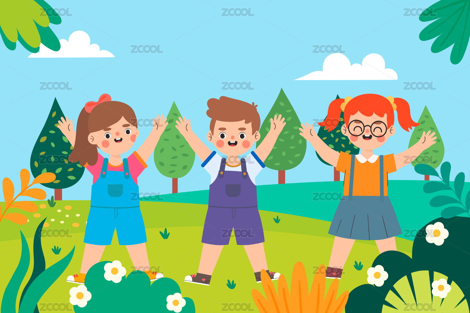 六一儿童节在草地上玩耍的小朋友们矢量插画