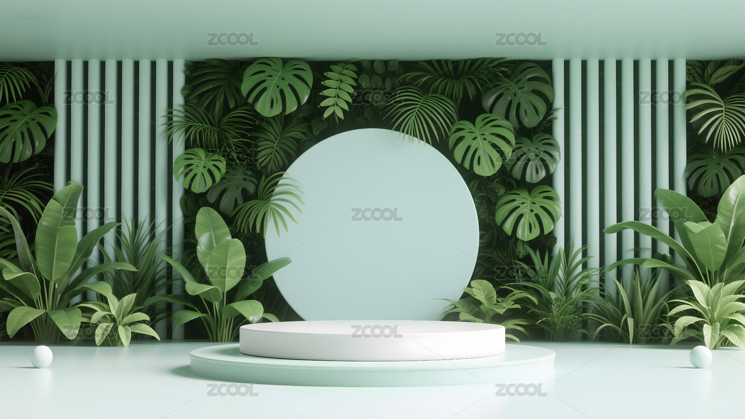 清新绿植与圆形平台装饰