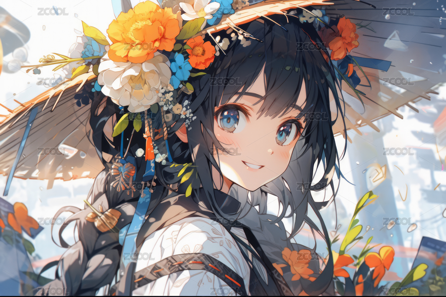 漂亮,女孩,可爱,手绘,水彩,森系,精致