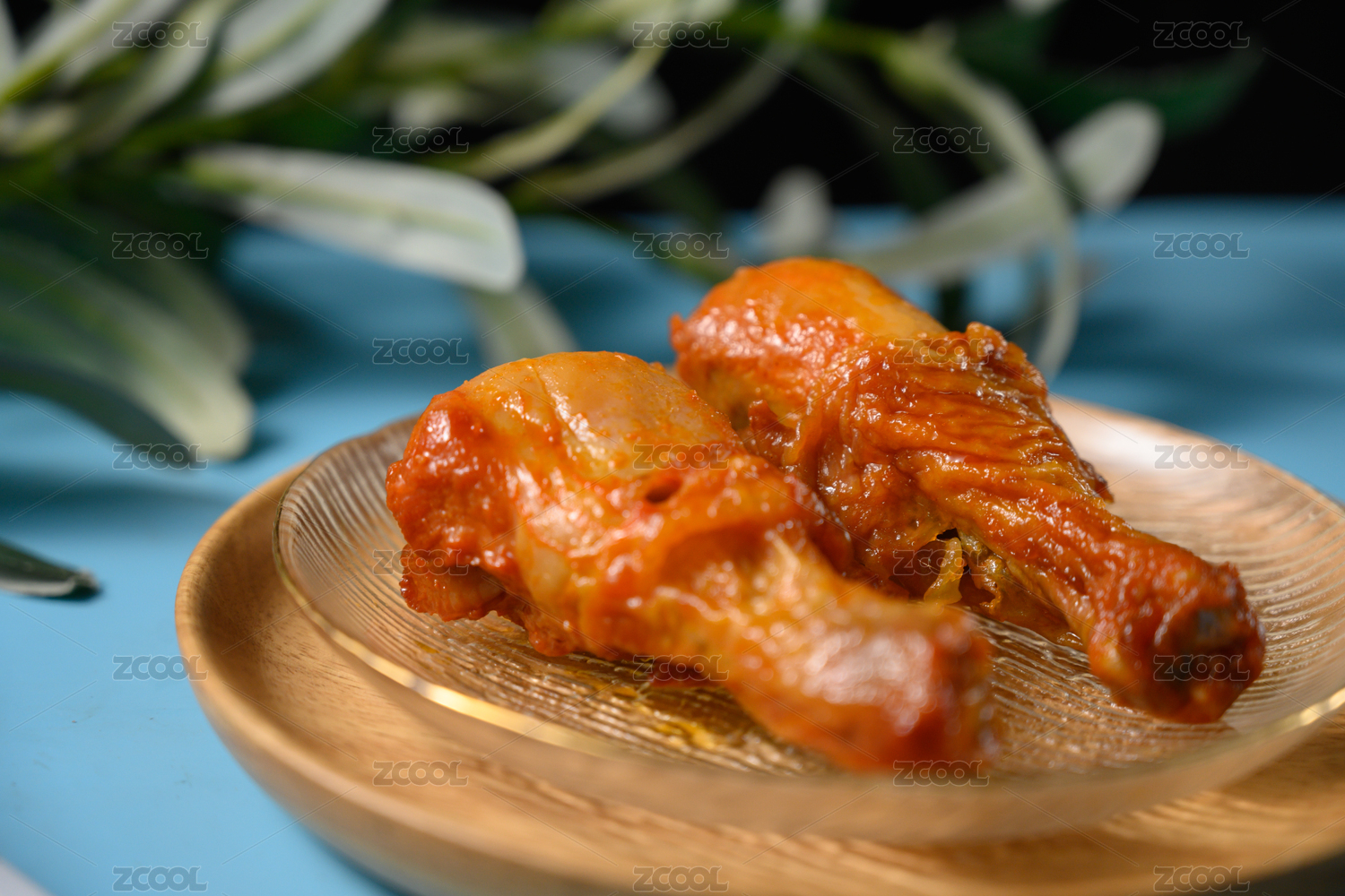 桌面上的盘子里的美味可口的奥尔良鸡腿