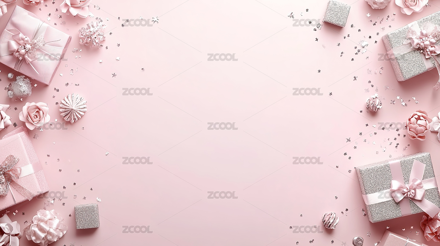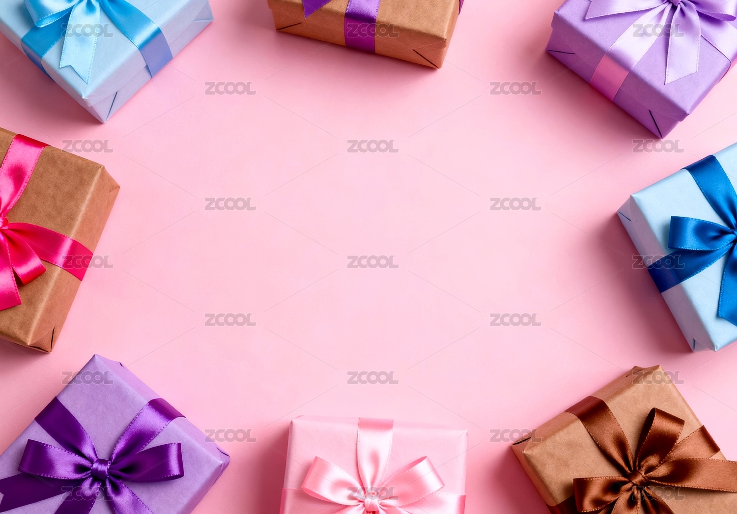多彩礼盒粉色背景展示