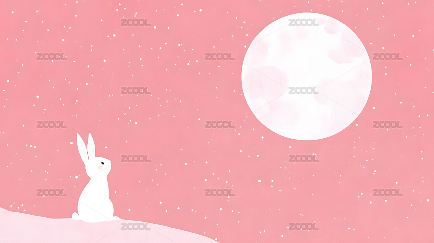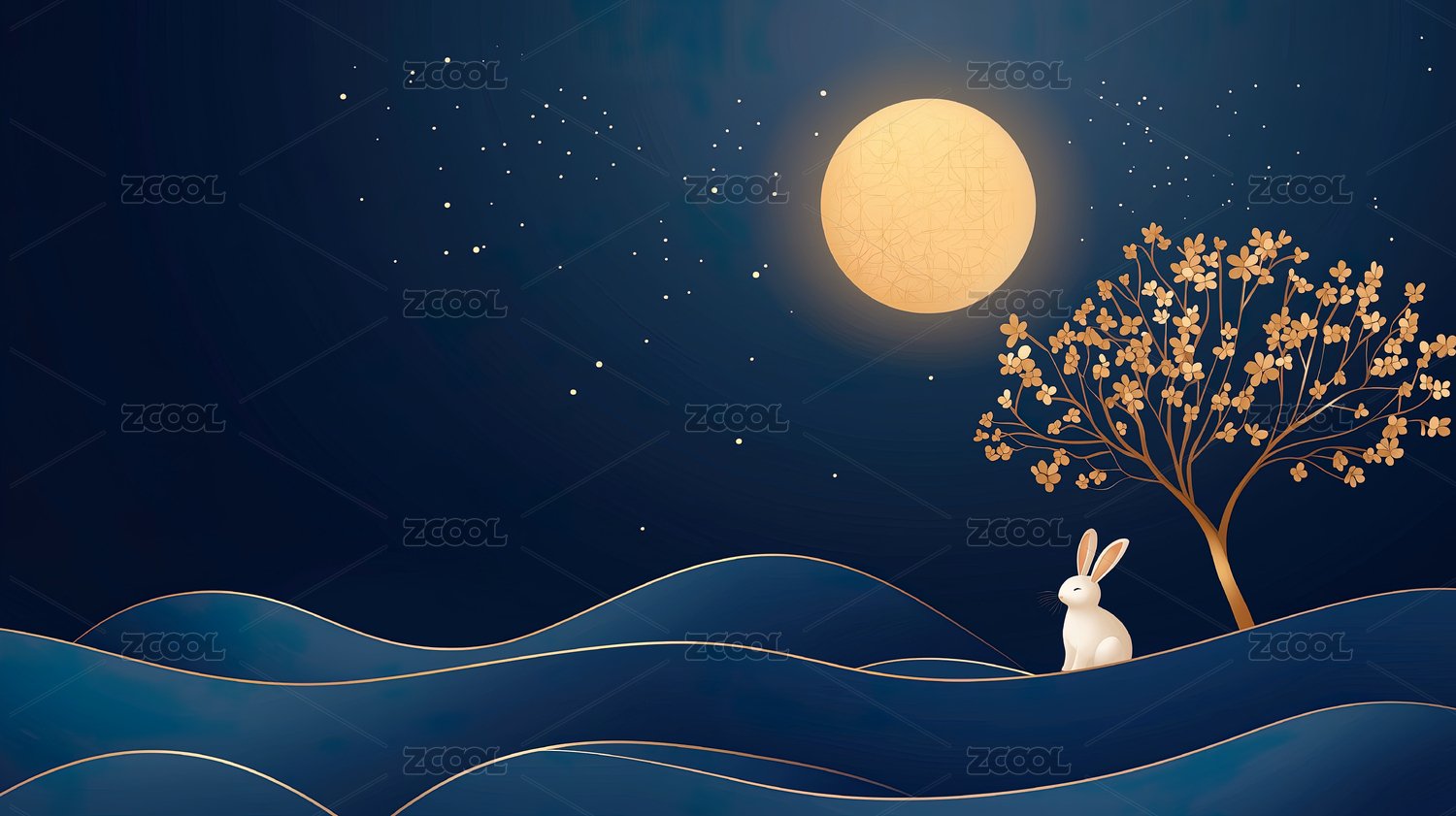 月满中秋节日玉兔愉快地赏月氛围感美景