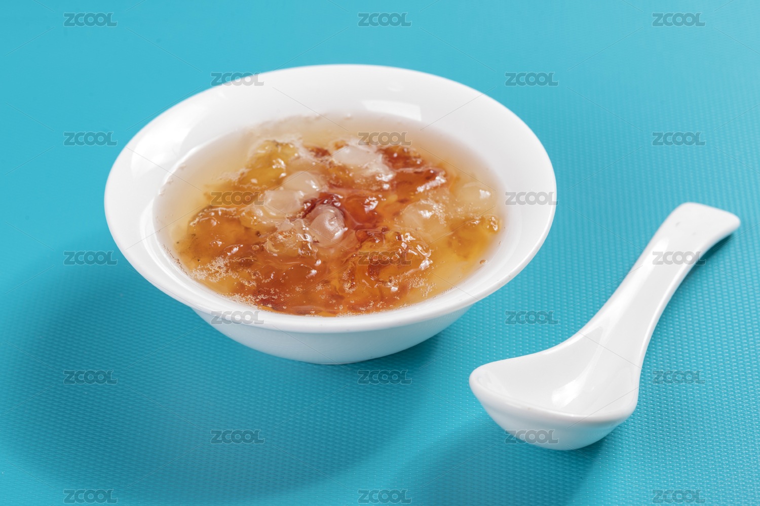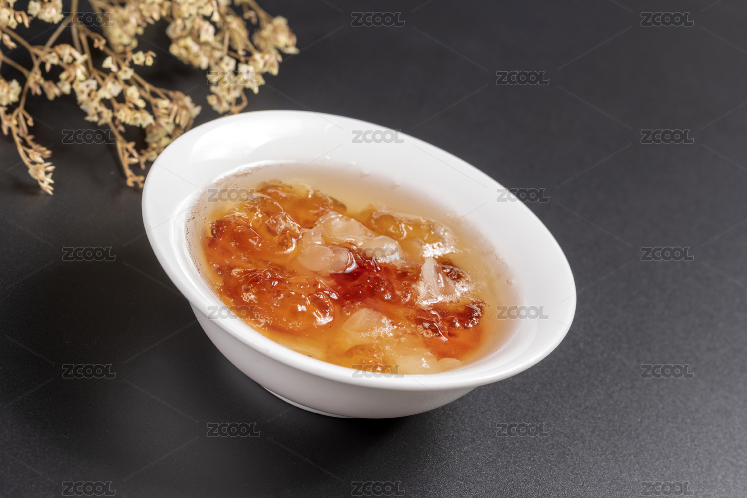 具有保健功效的皂角米桃胶羮摆放在桌面上