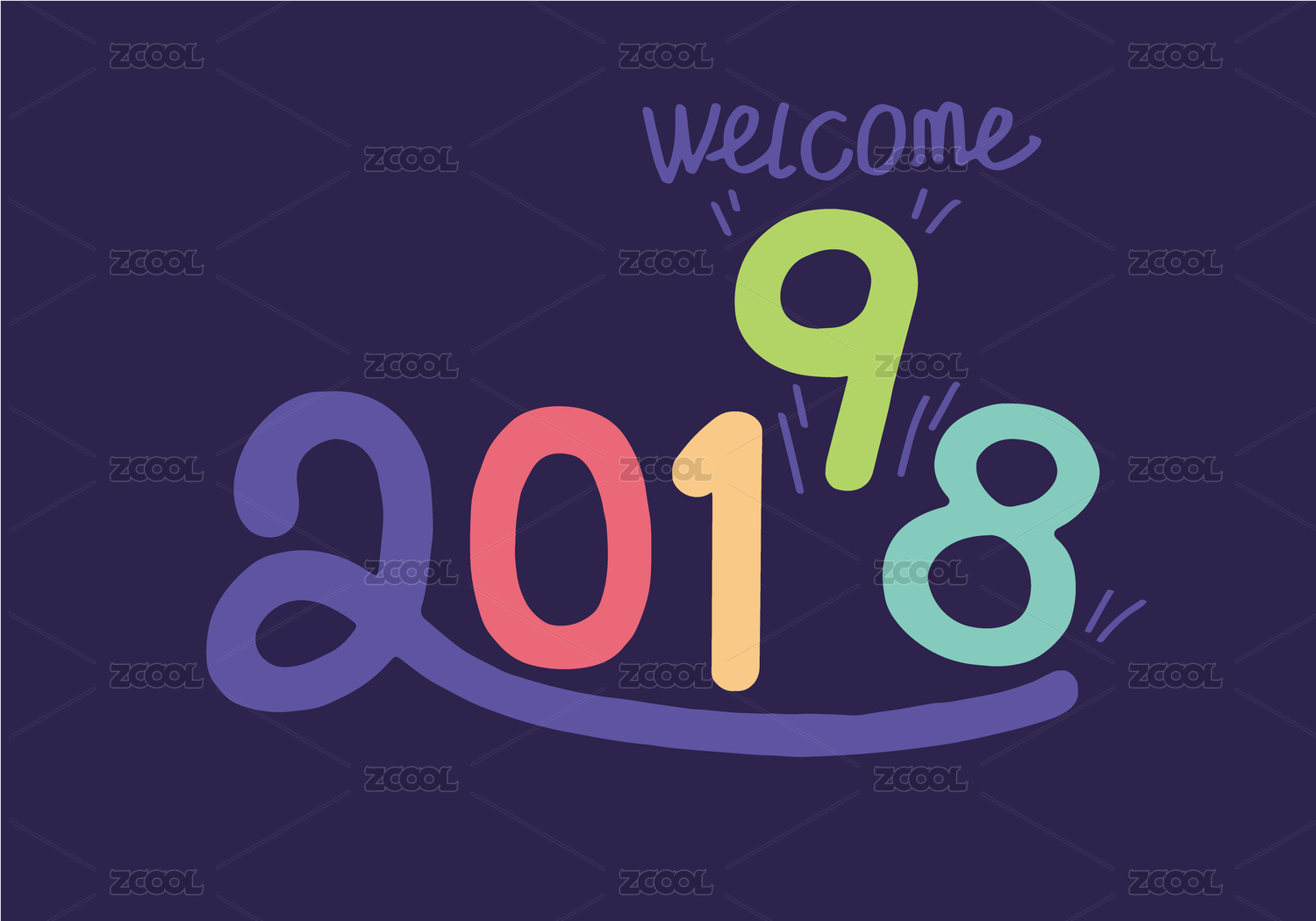 Vector 2018 Happy New Year design with text on white background 2018新年