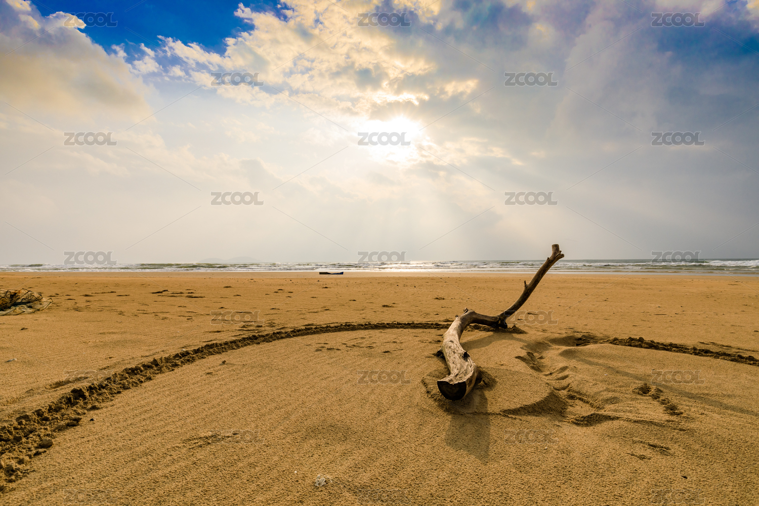 中国海南东方市海滩上的老树根