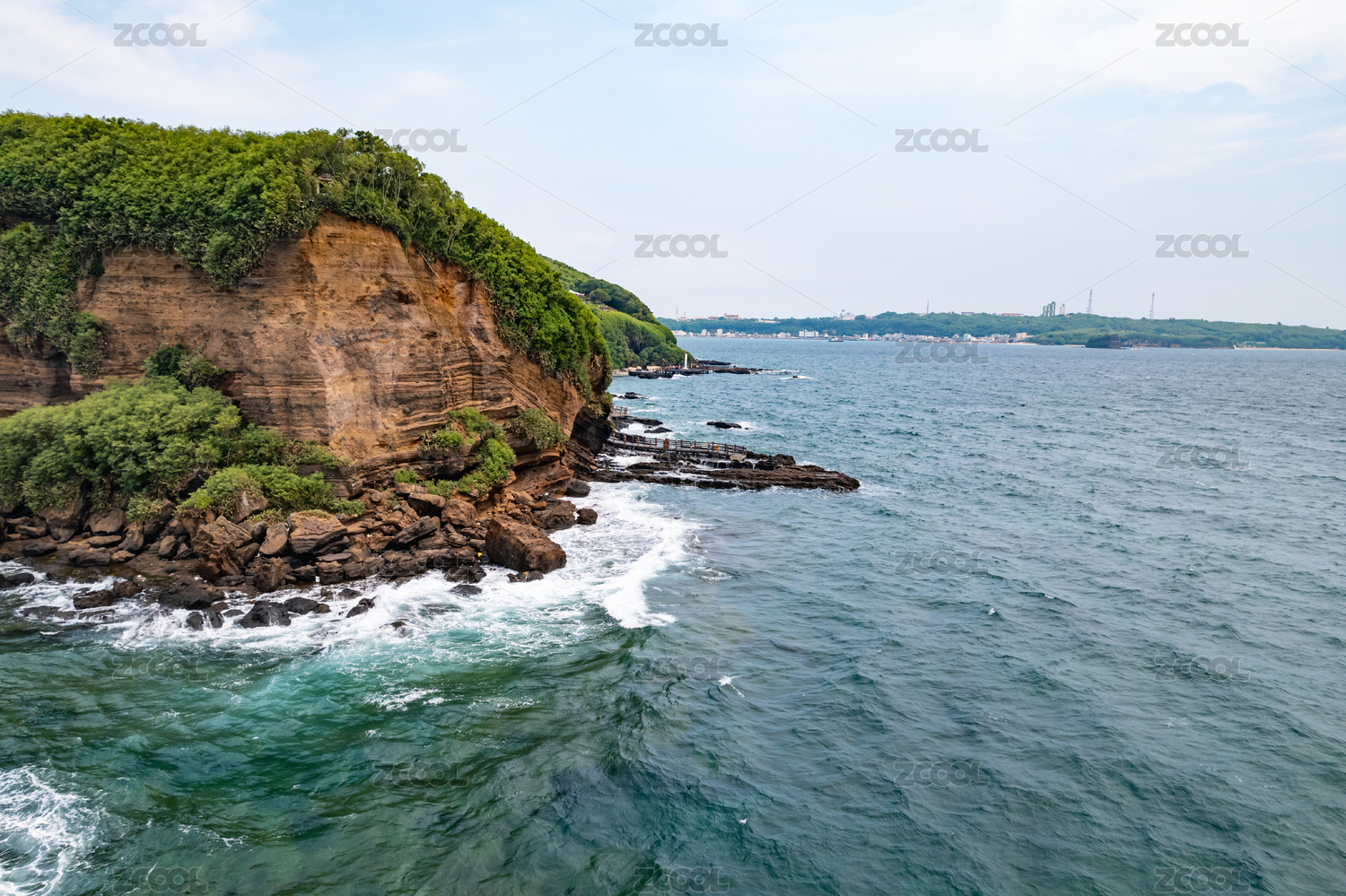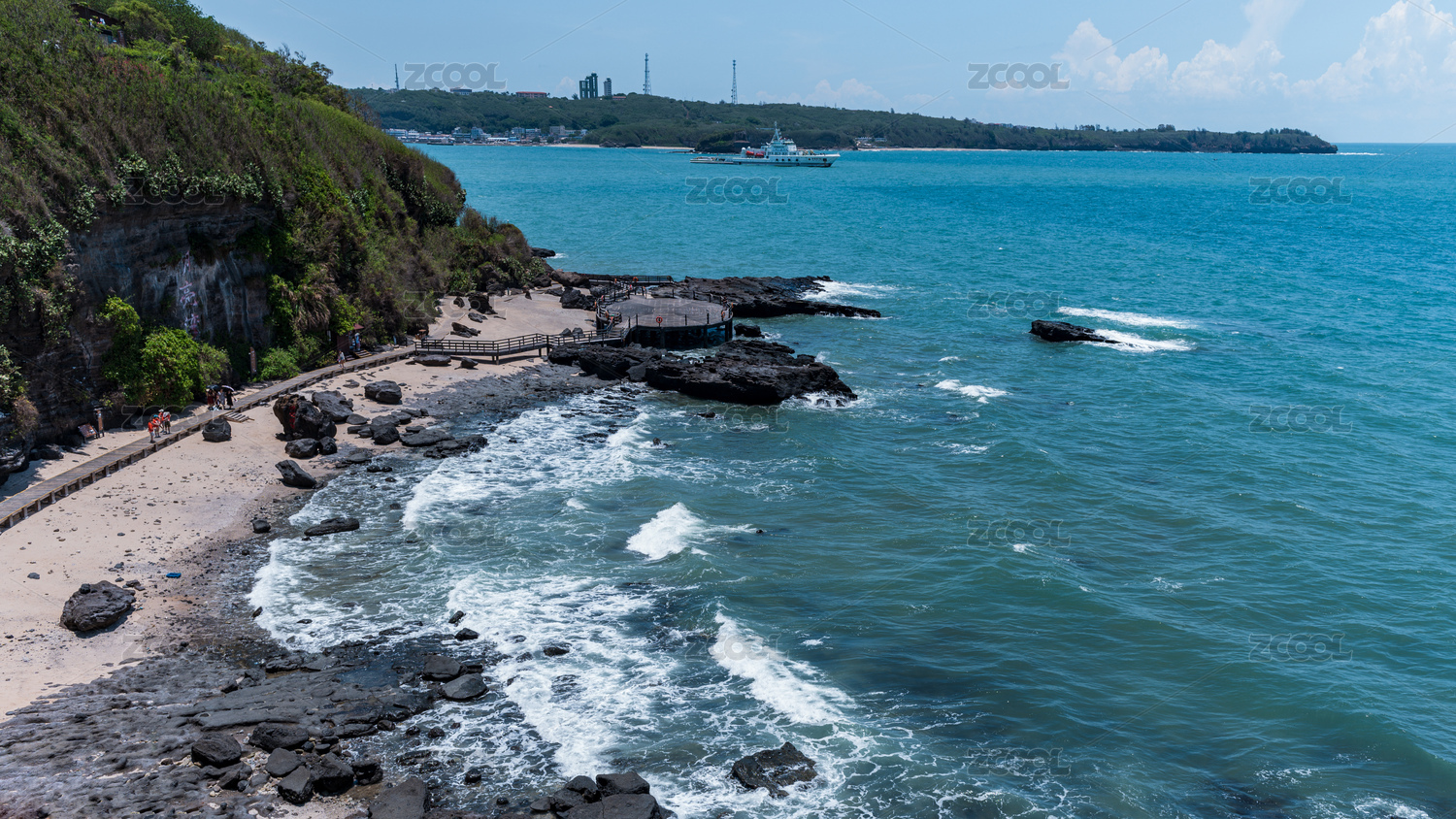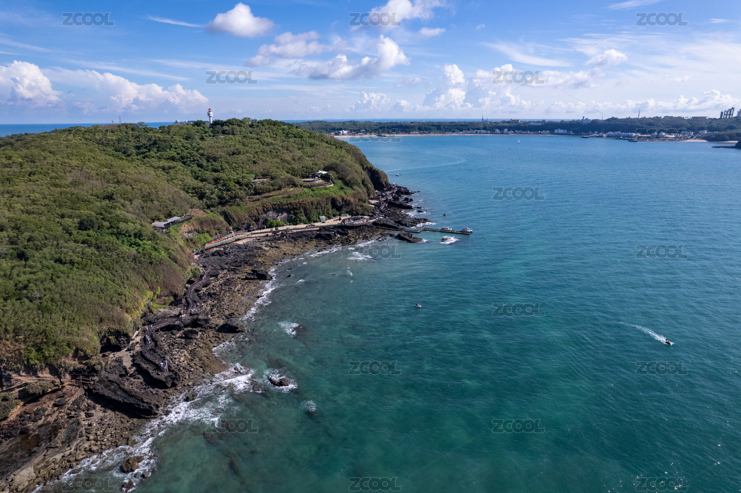 中国广西北海市洲岛鳄鱼山景区木栈道航拍