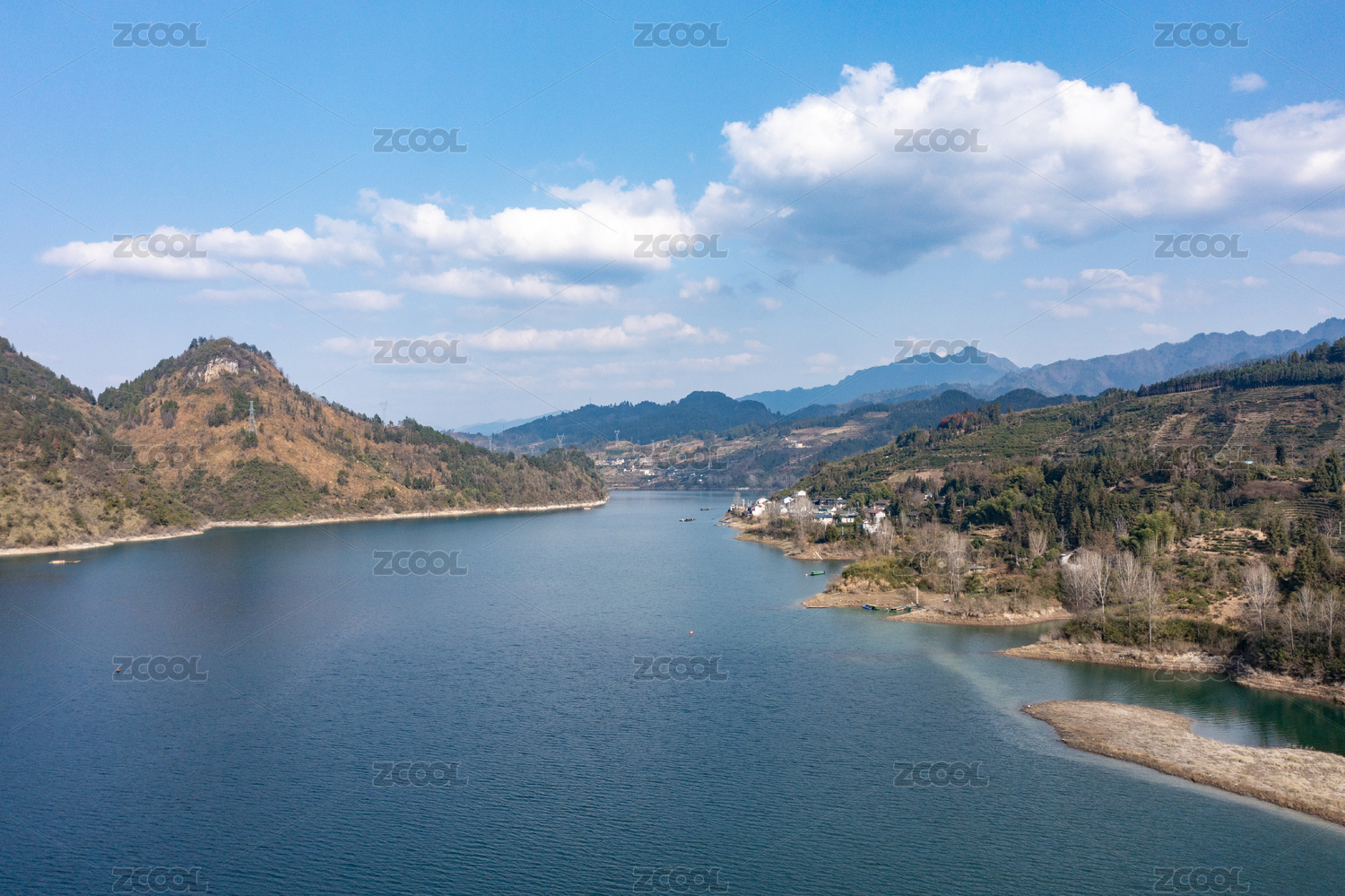 雾汽弥漫的四川省绵阳市涪江六峡峡湾风光