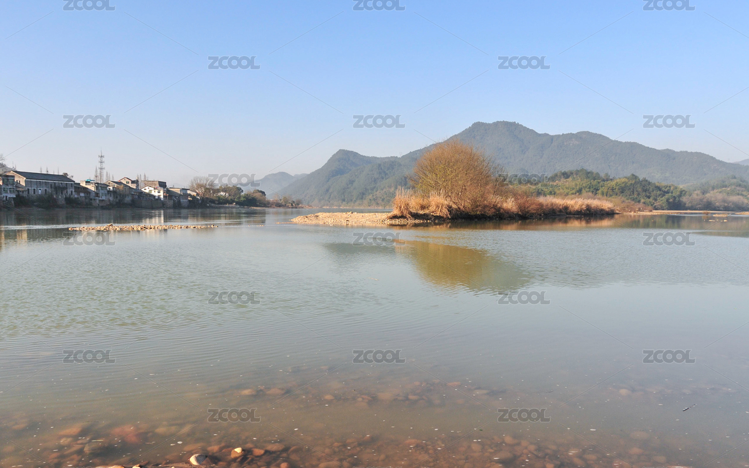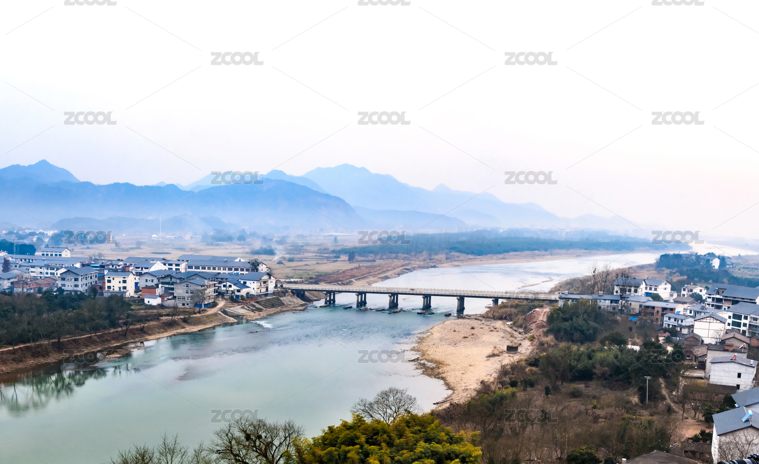 中国浙江省杭州市建德梅城镇沿江风光航拍