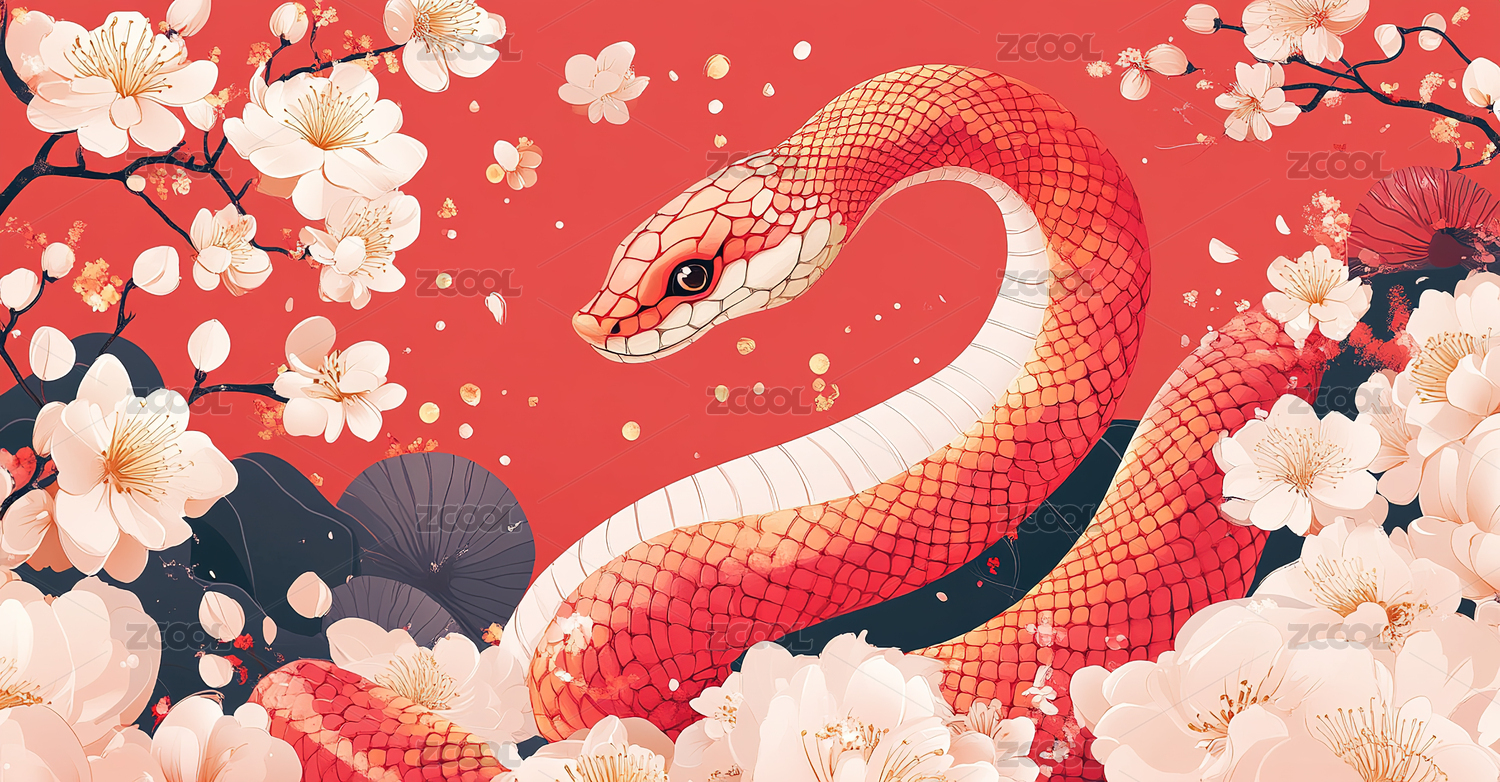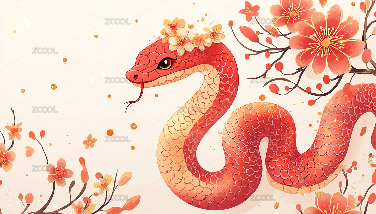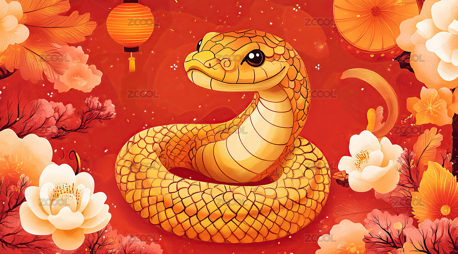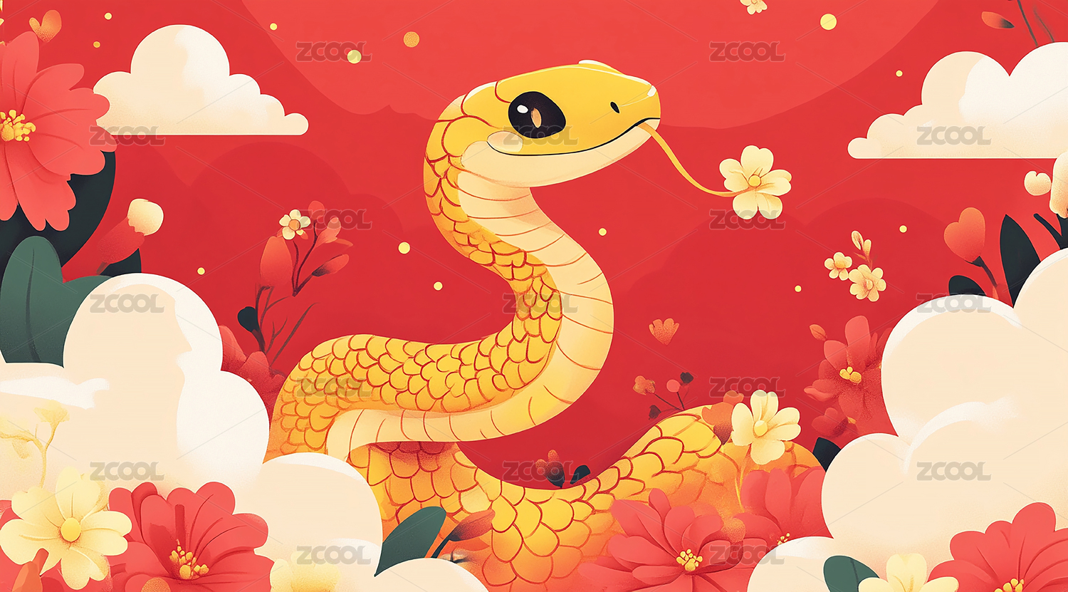 红色,卡通,背景,插画,蛇年,蛇,十二生肖,2025