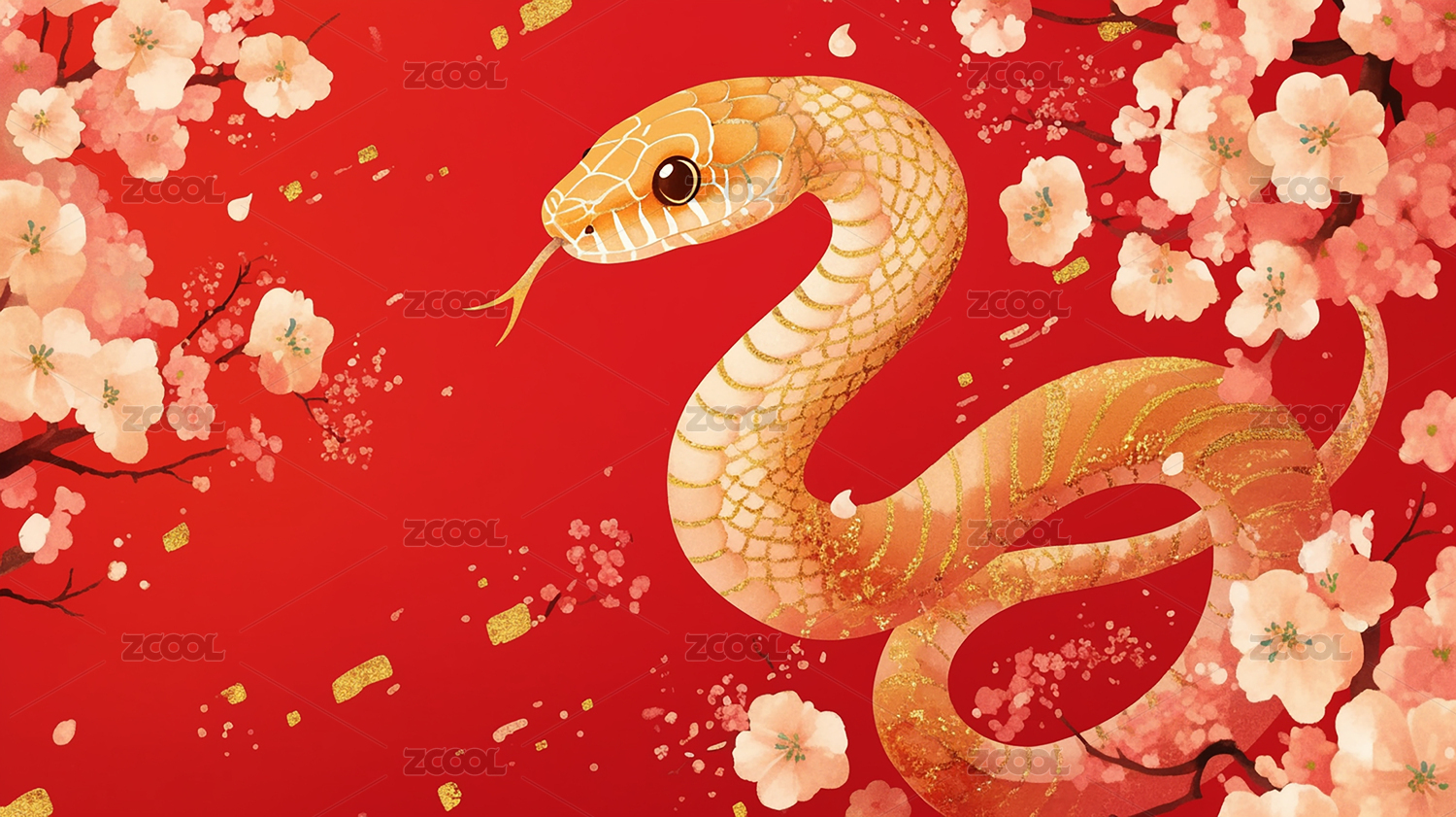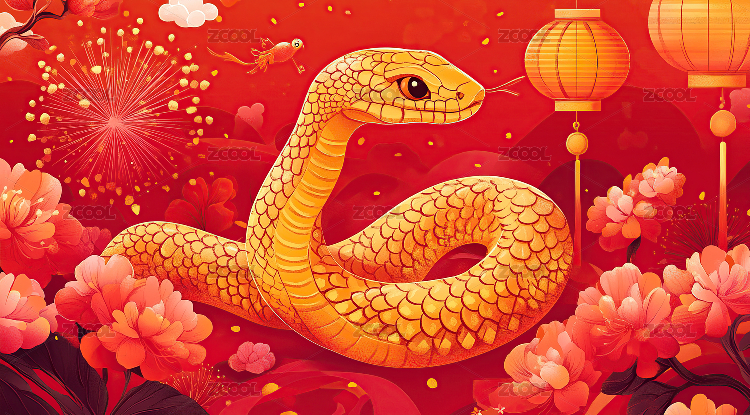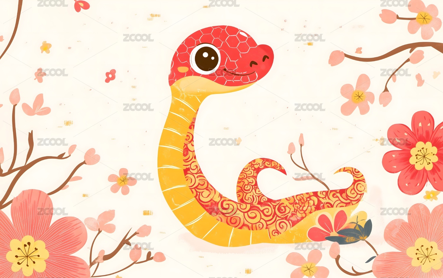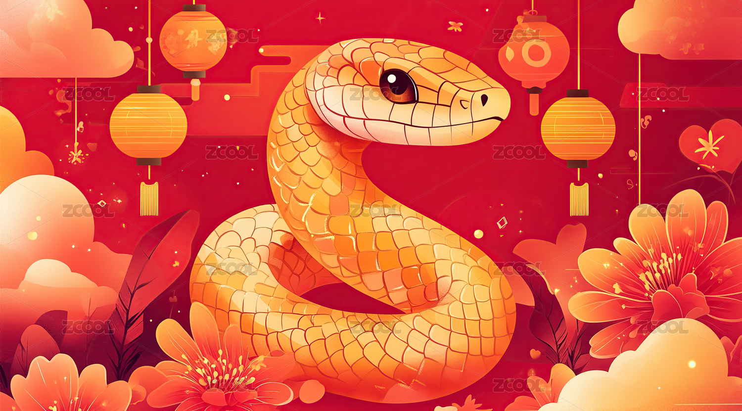 红色,卡通,背景,插画,蛇年,蛇,十二生肖,2025