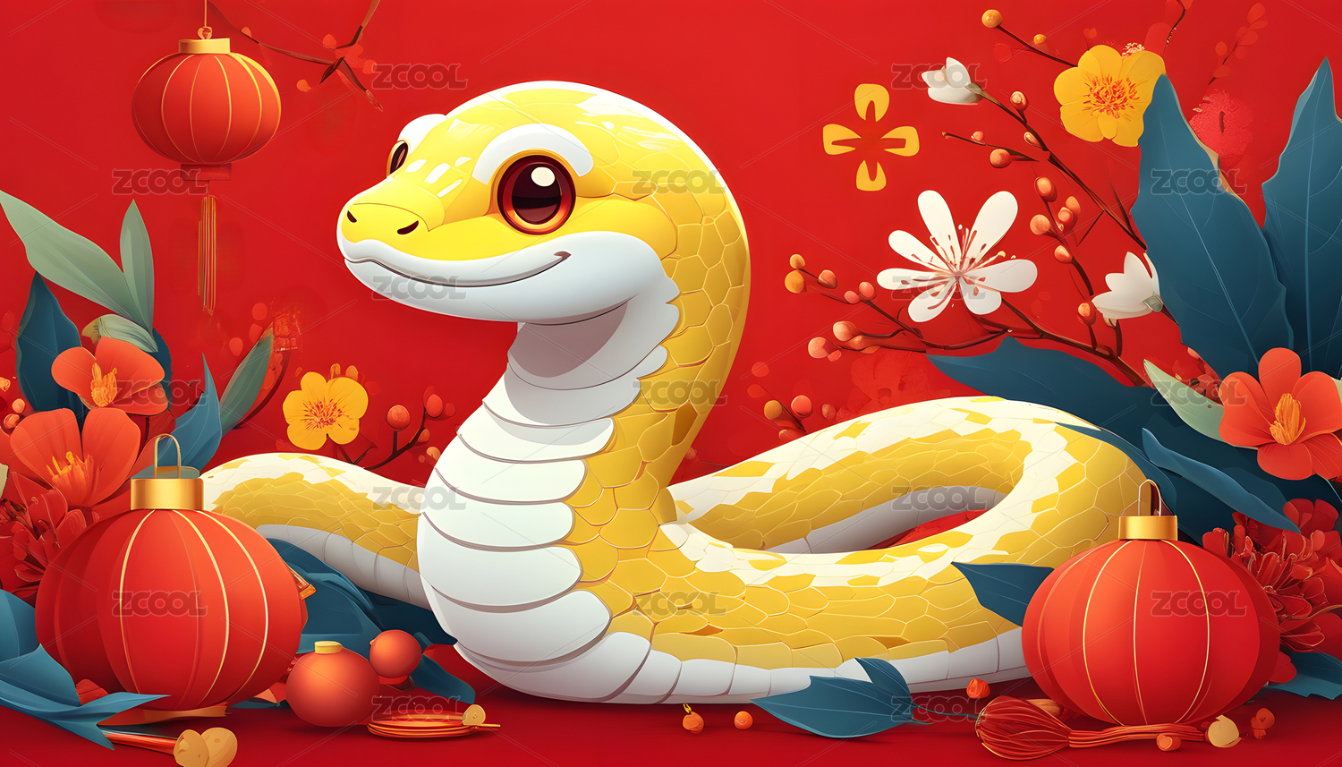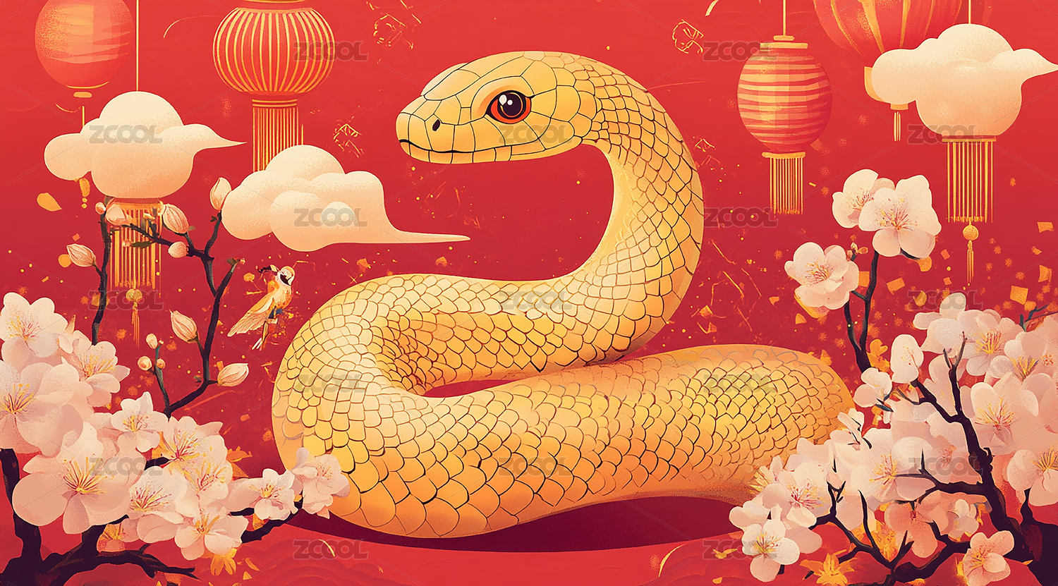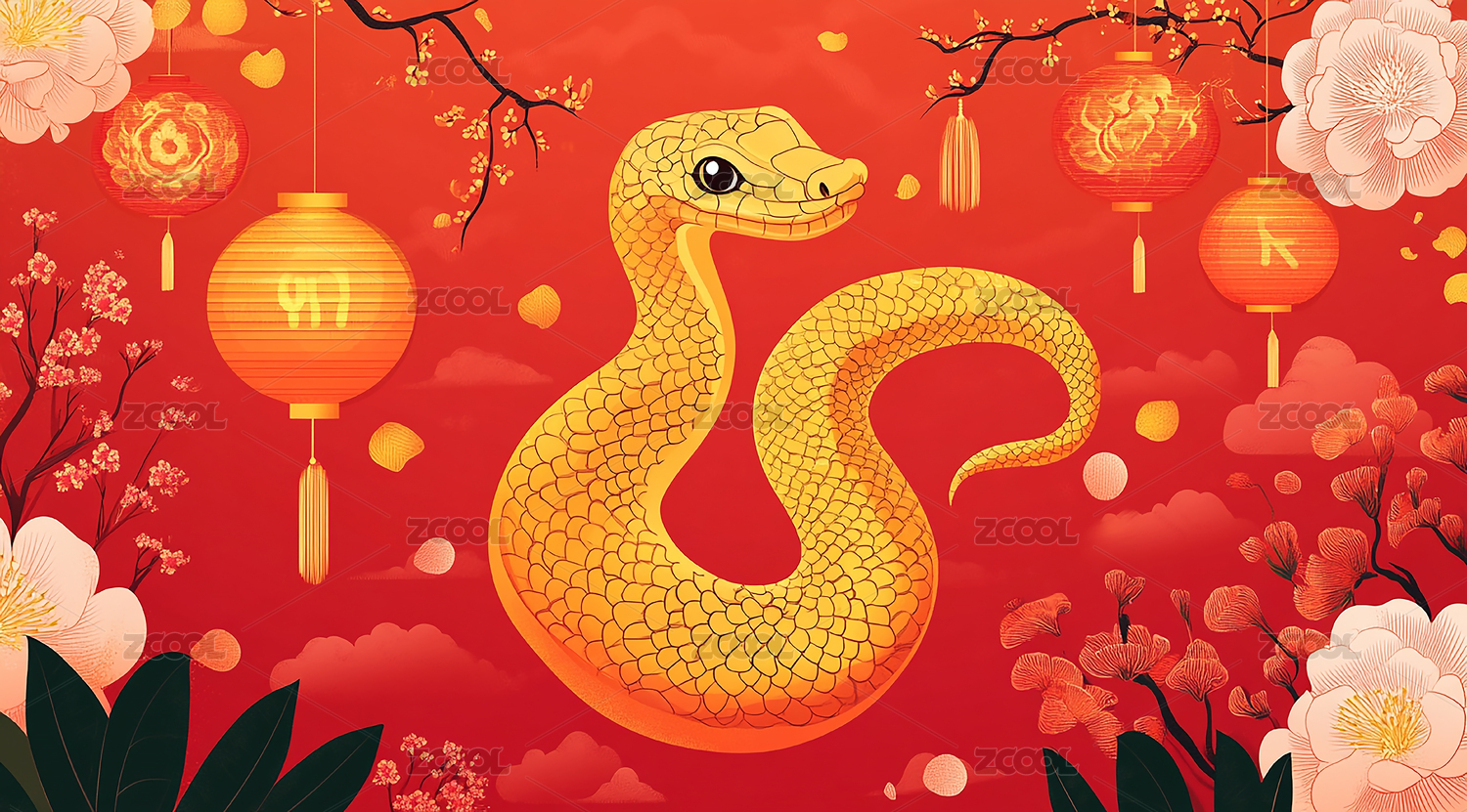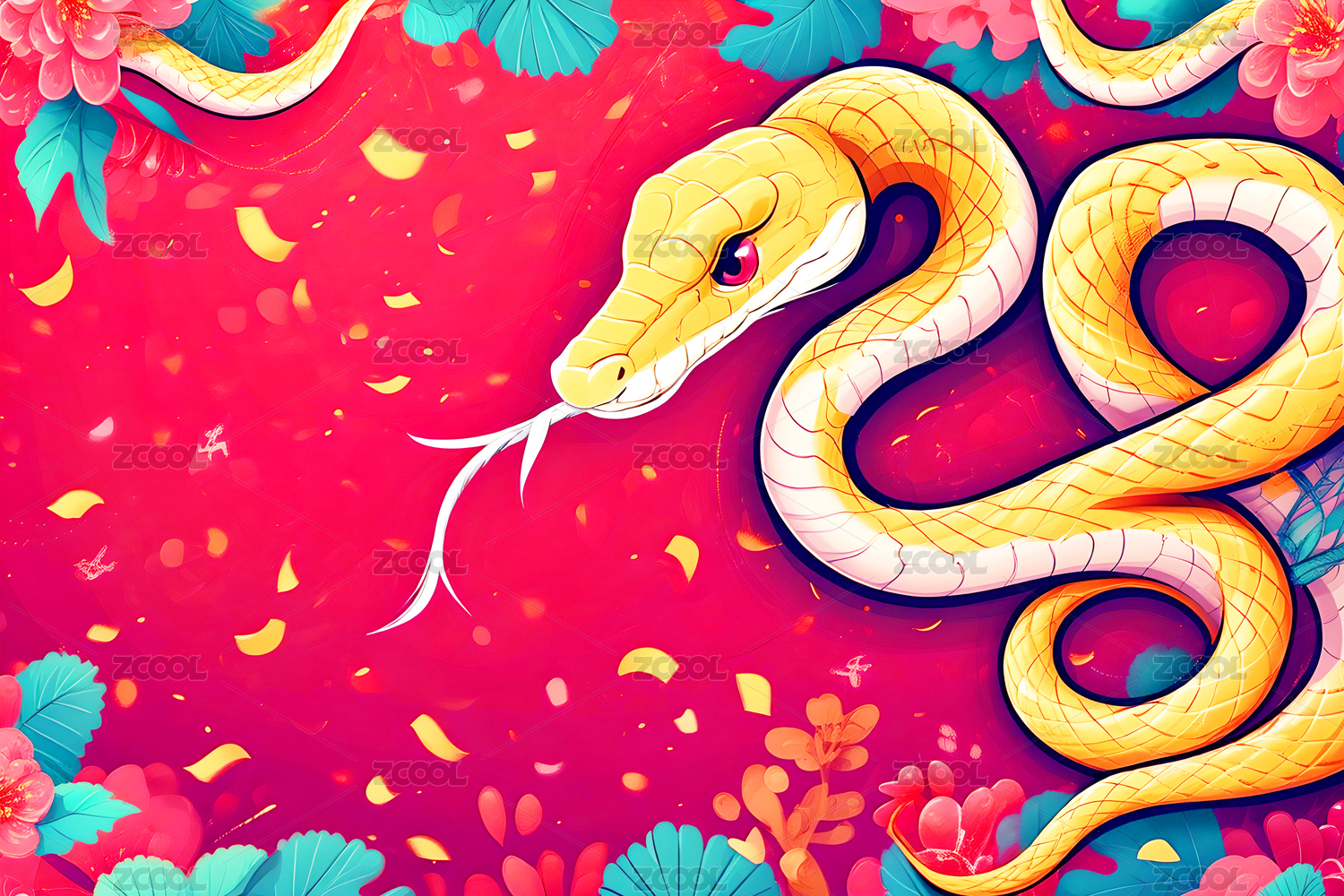 红色,卡通,背景,插画,蛇年,蛇,十二生肖,2025