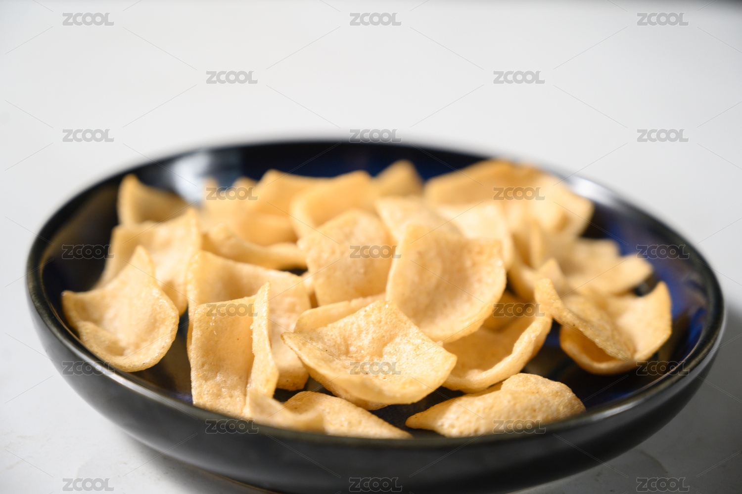桌面上的盘子里的美味可口的虾片