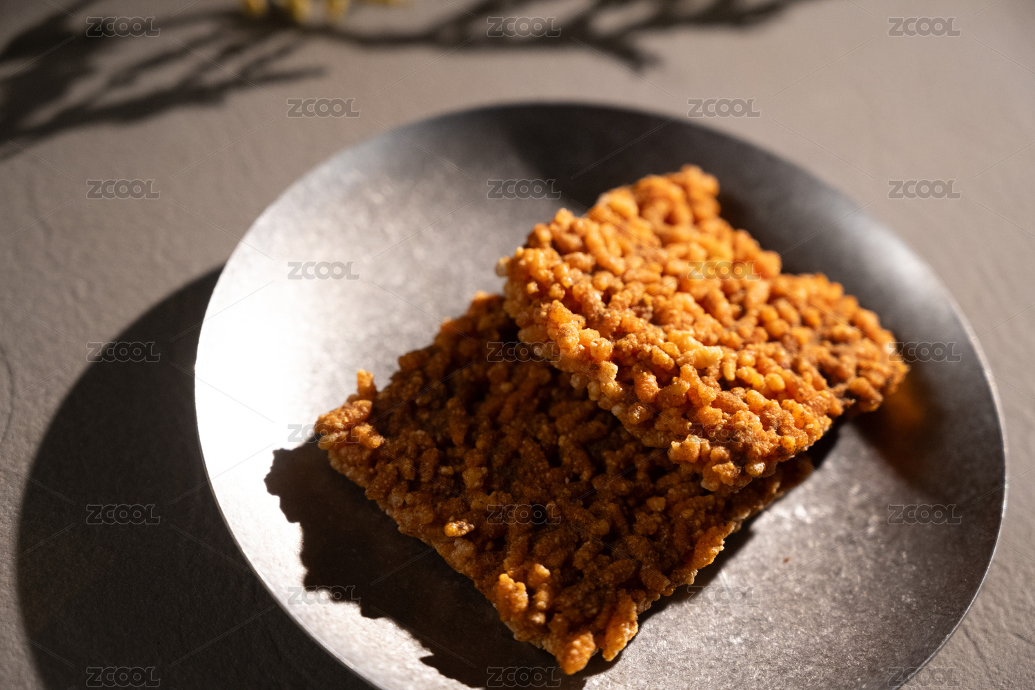 桌面上的盘子里的美味可口的锅巴