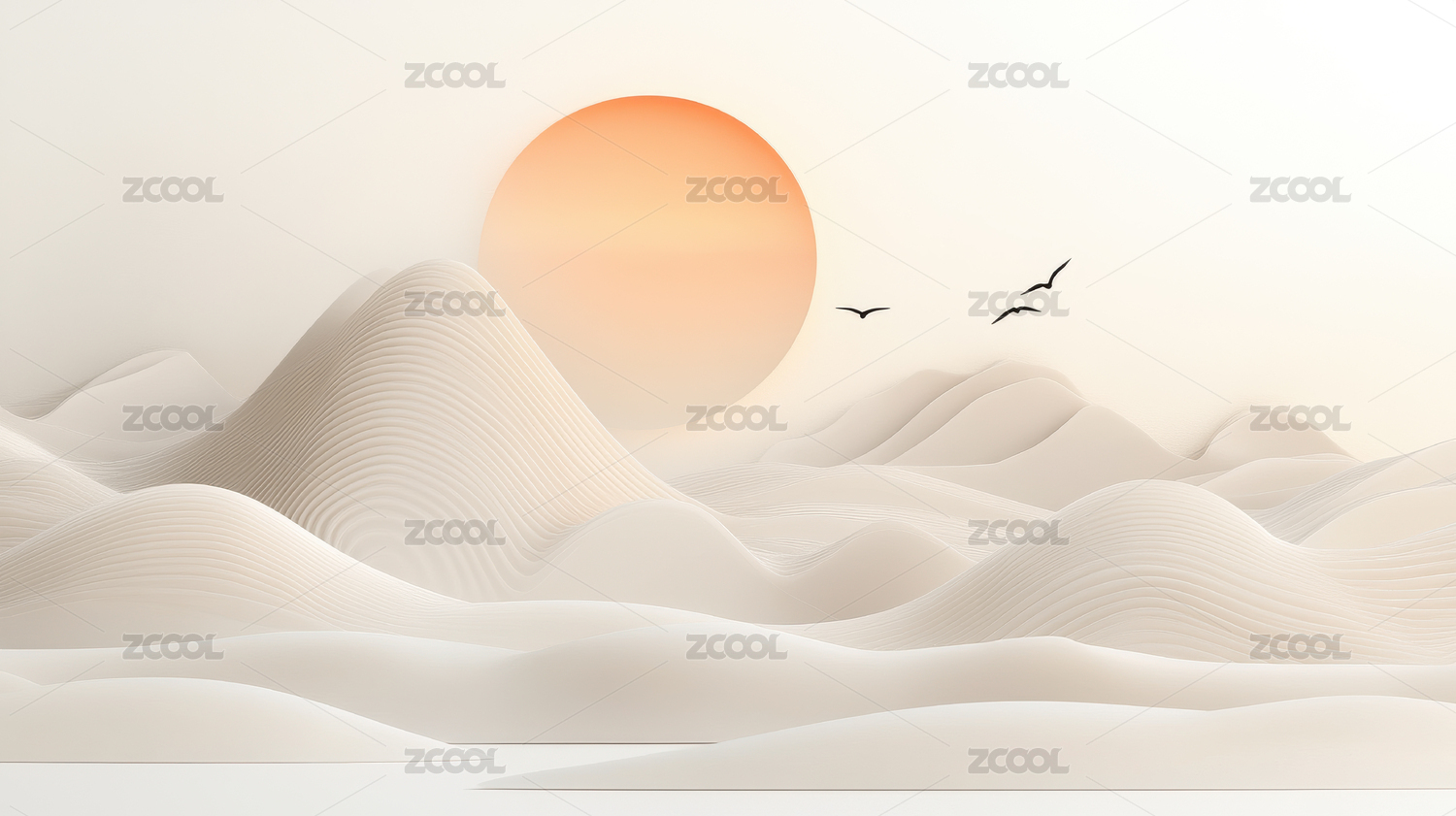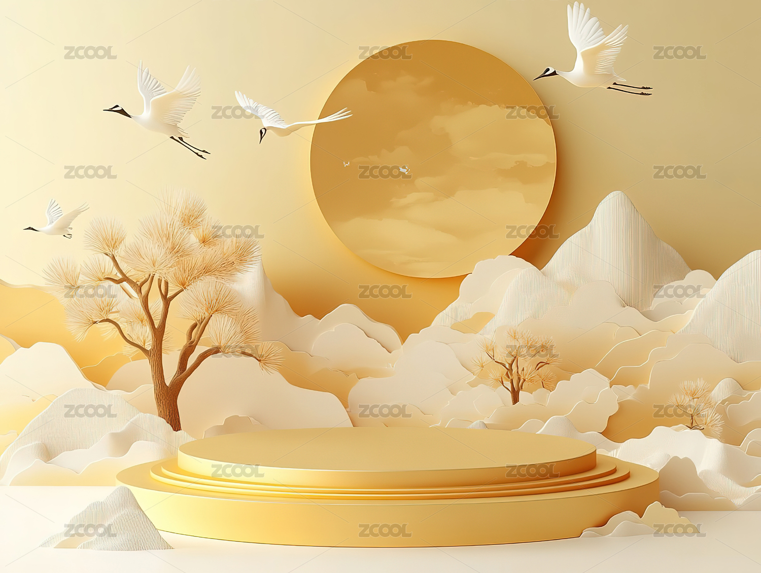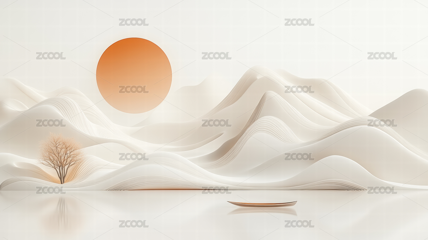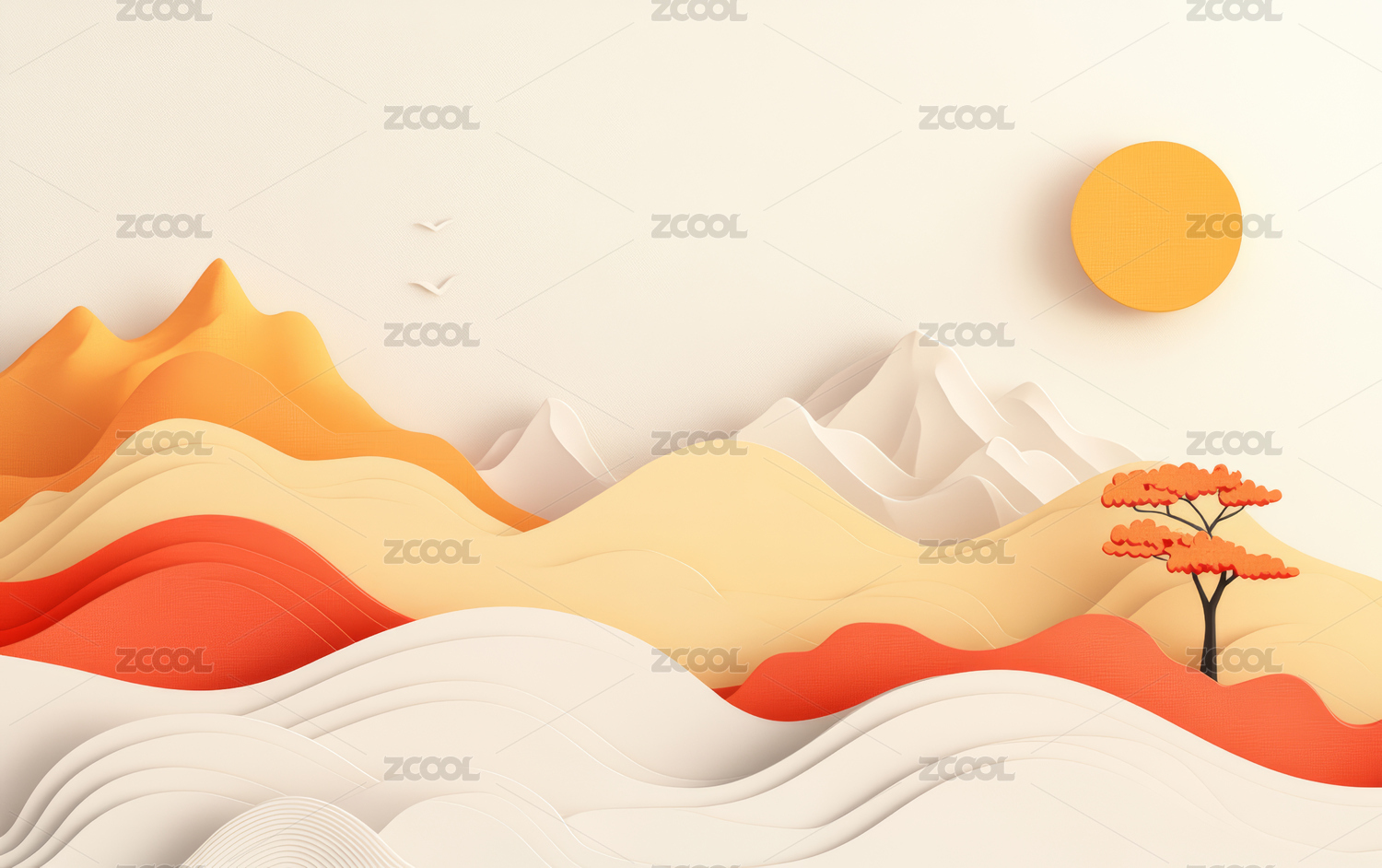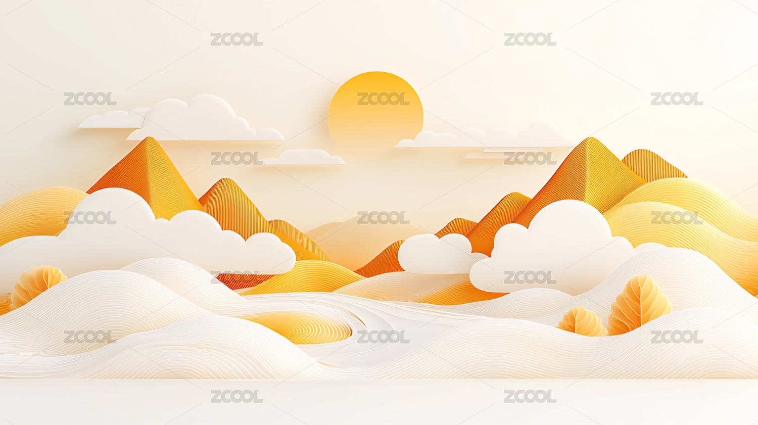 极简,国风,插画,风景,户外,自然,背景,秋天,云