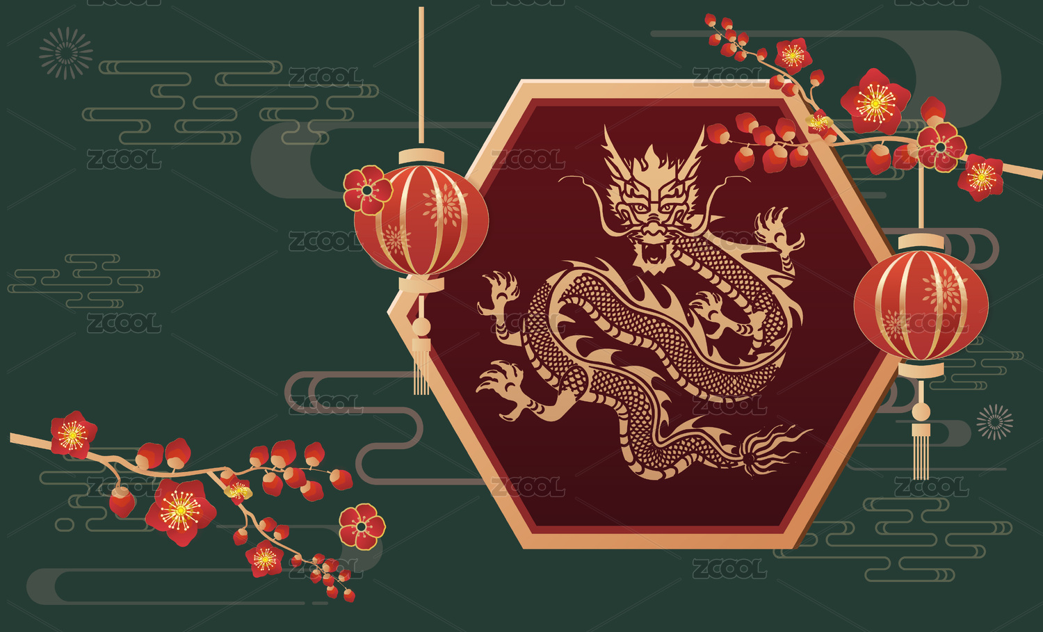 龙年,图案,美丽,中国龙,2024,快乐,黄金,季节,节日,动物