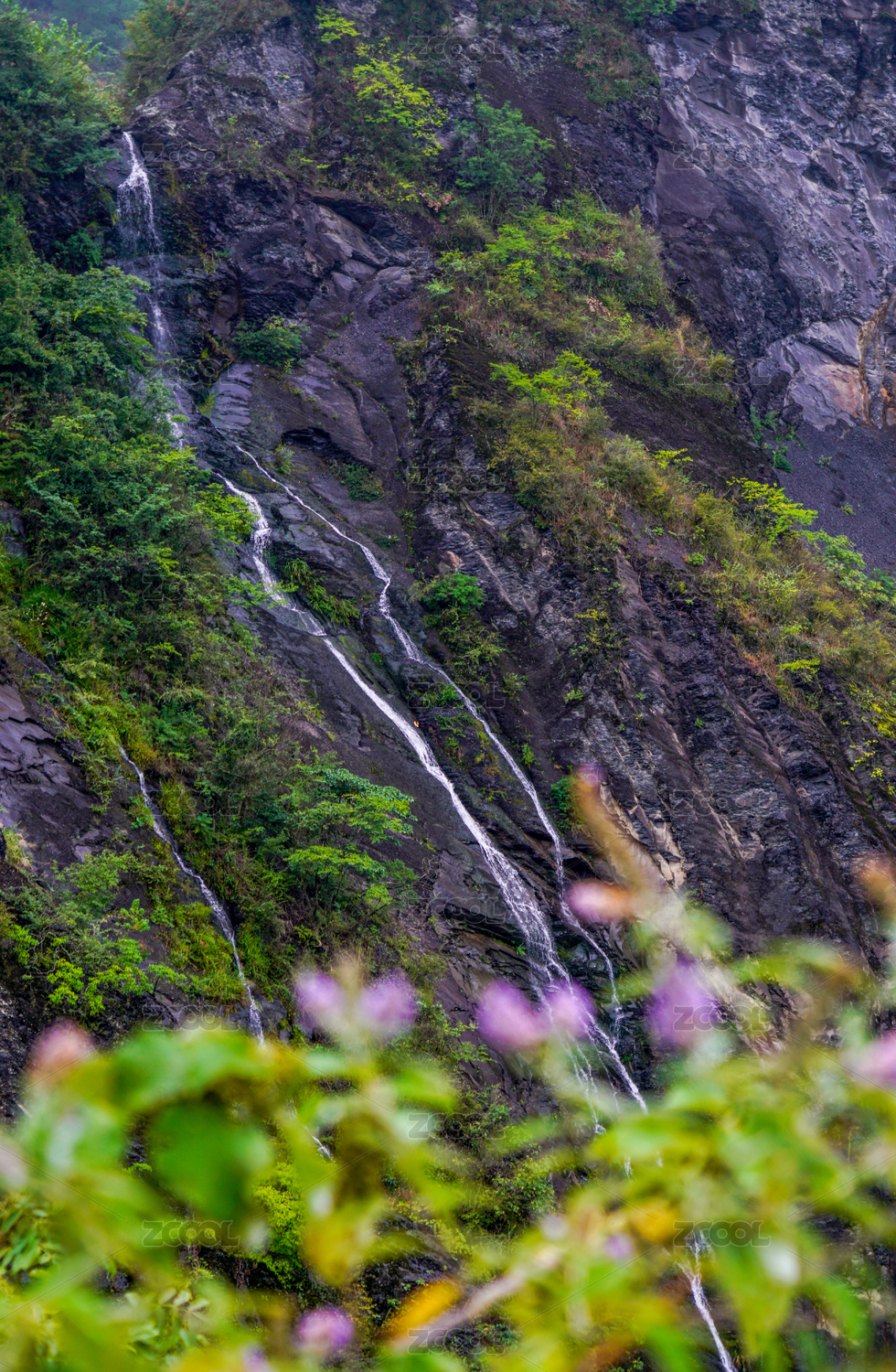山坡上的小瀑布水流