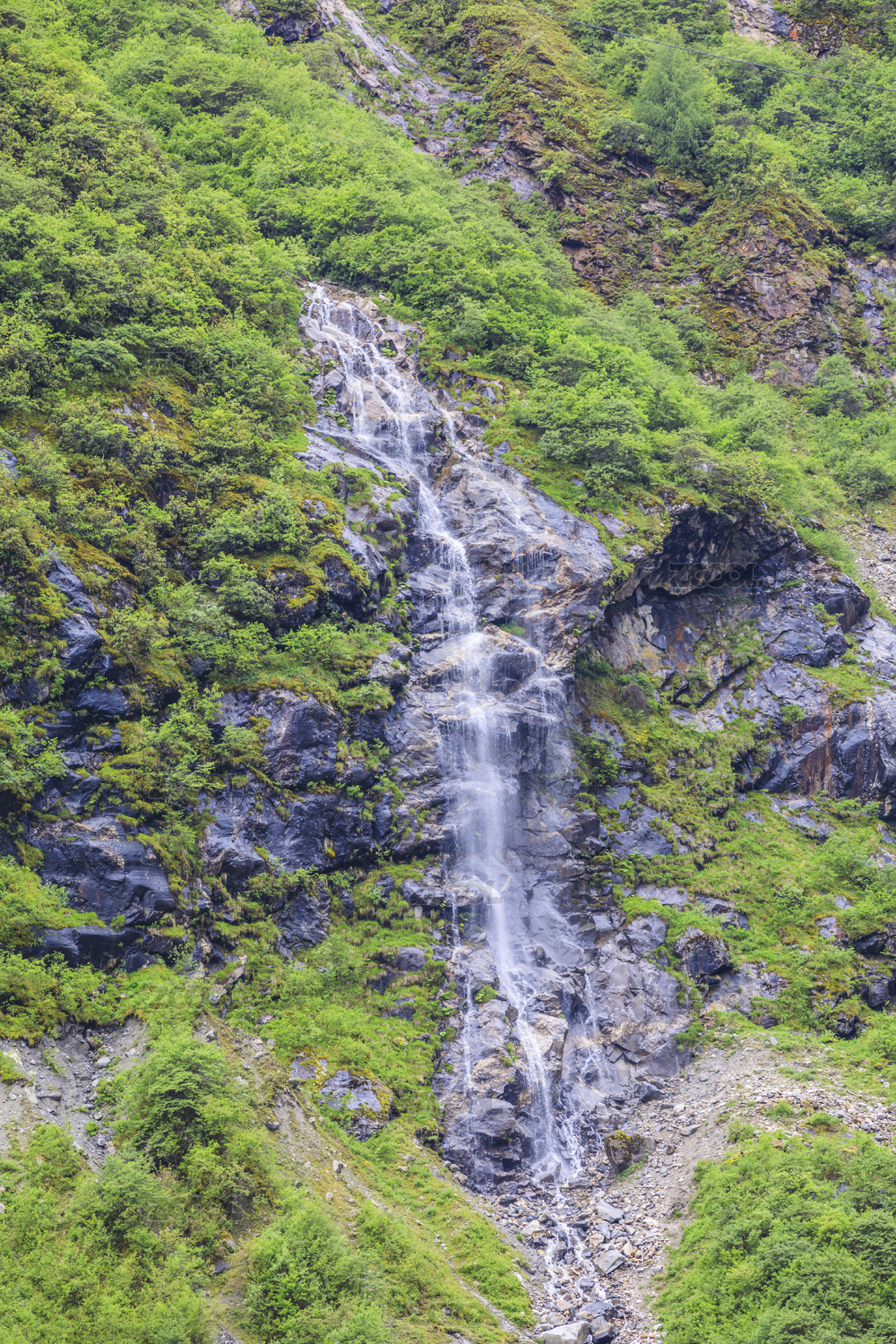 中国西藏聂拉木县樟木口岸附近悬崖瀑布