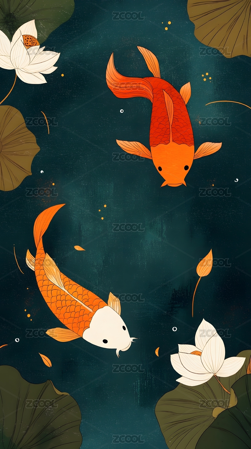 好运,红色,花纹,华丽,活泼,吉祥,剪纸,锦鲤,浪,鲤鱼