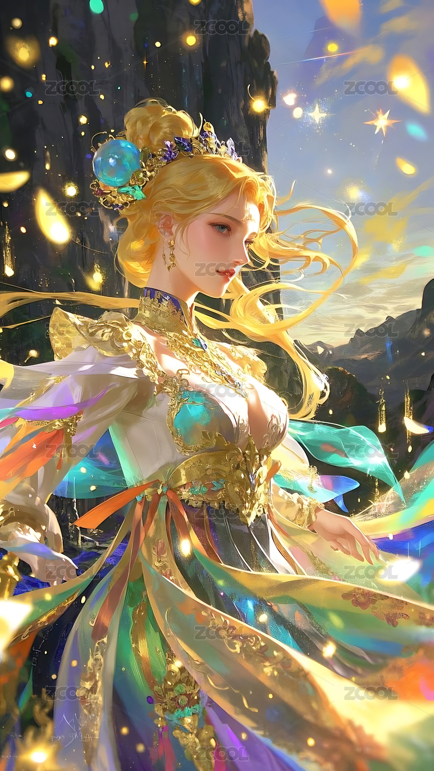 金发美女仙气飘逸,华丽服饰光彩夺目