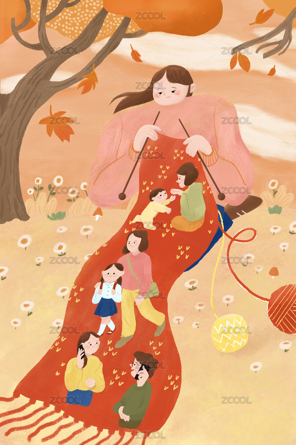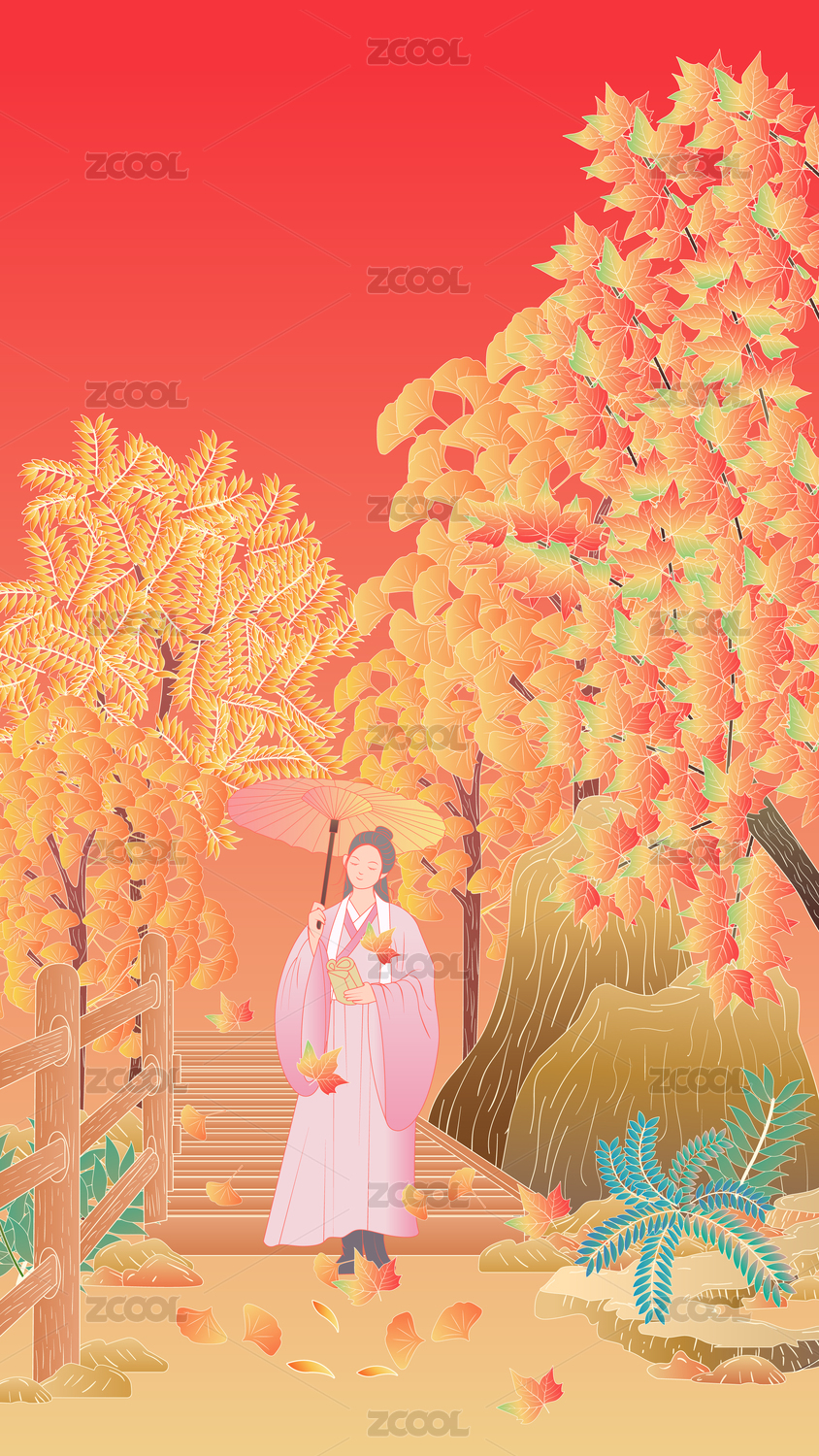 秋天,秋季,秋分,节气,插画,中国风,古风,竖幅,竖版,白底