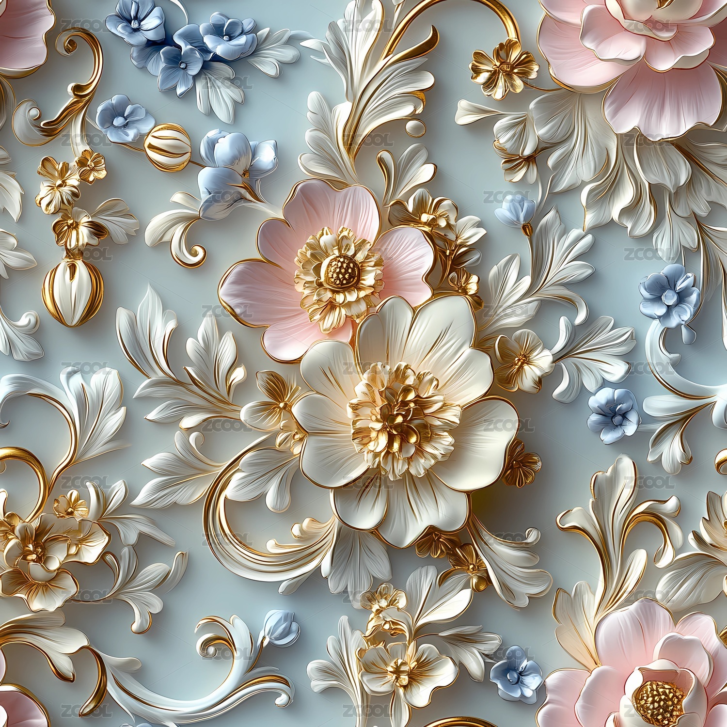 花朵,巴洛克,欧式花朵,无缝,彩色,壁布