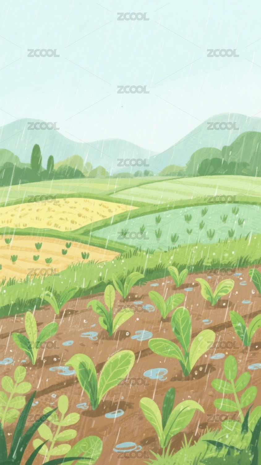 春天二十四节气谷雨茶园治愈系卡通手绘插画