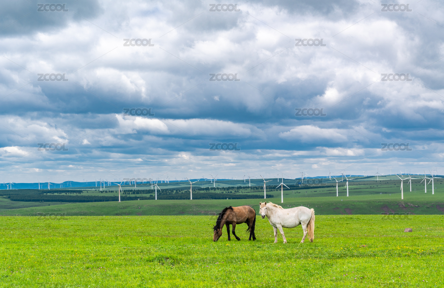 内蒙古,草原,夏季,牧场,马匹,蓝天,白云,绿草,放牧,畜牧