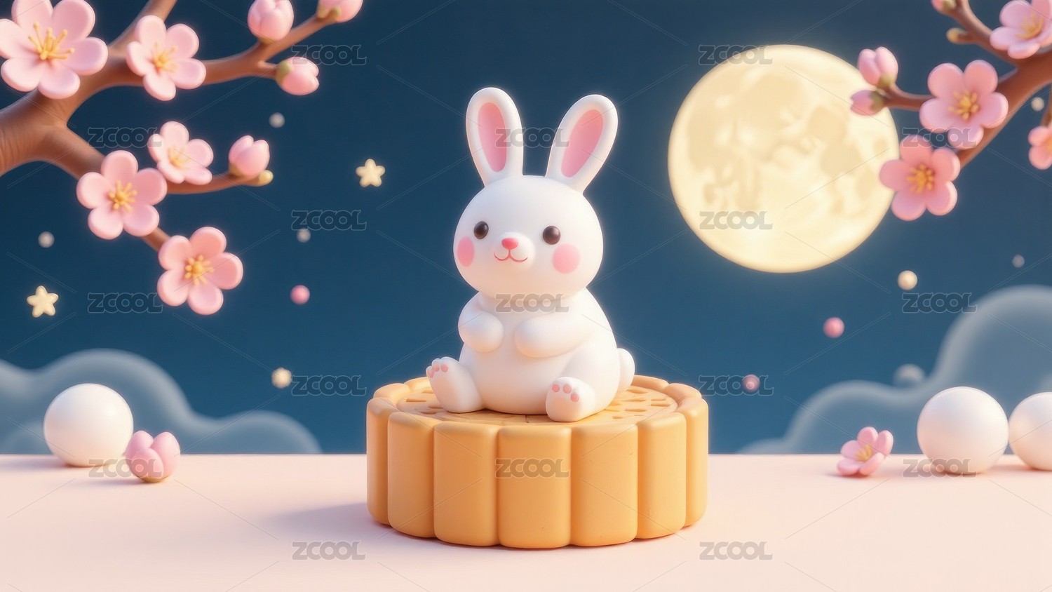 中秋节可爱国潮风玉兔传统节日赏月3D插画