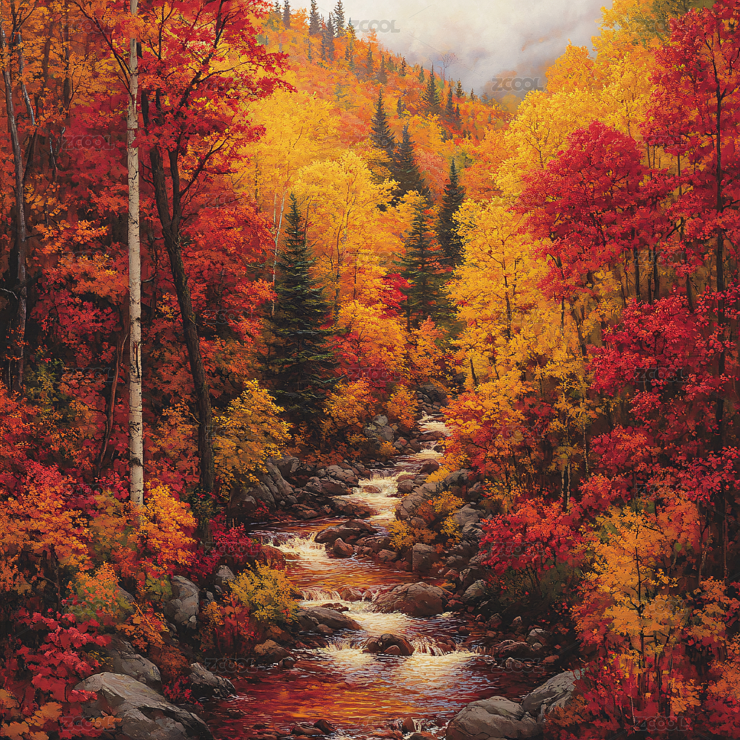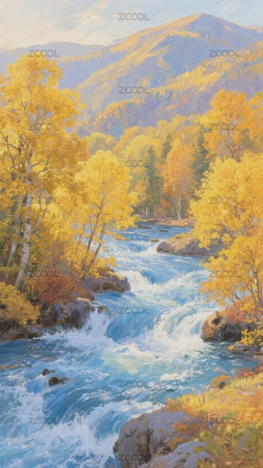 森林,树林,树木,溪流,溪水,金黄,落叶,树叶,秋天,金秋