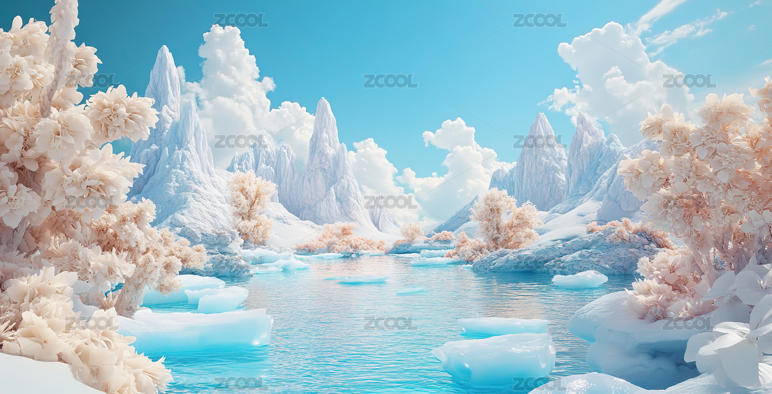 清新羊毛毡毛绒高原雪山风景3D卡通立体画