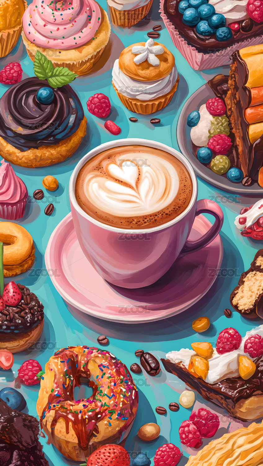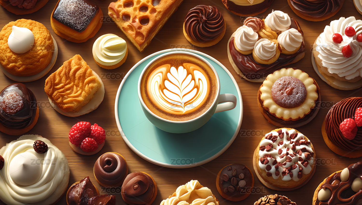 咖啡,意式,咖啡杯,卡布奇诺,糕点,甜点,点心,美食,美味,下午茶