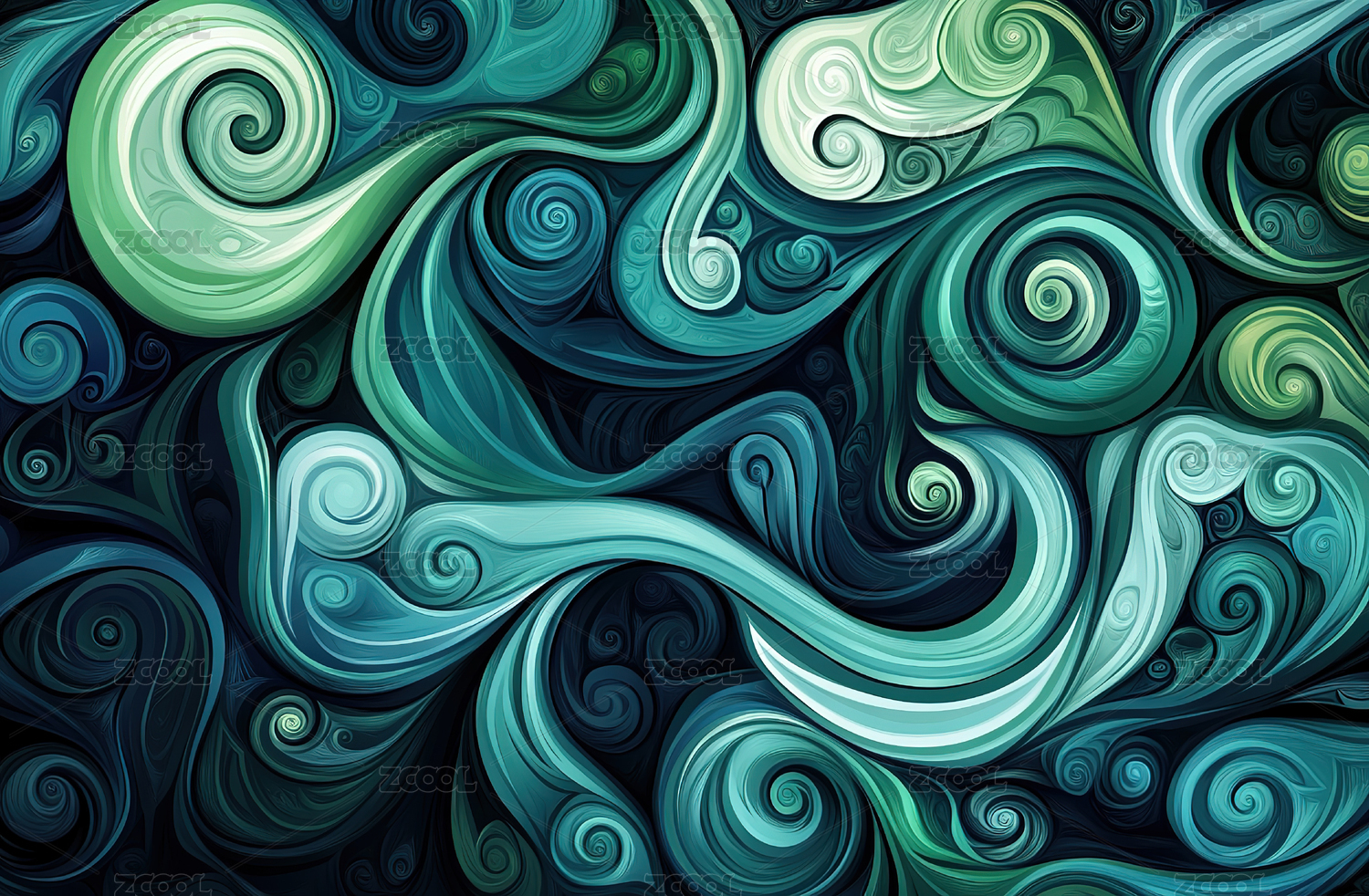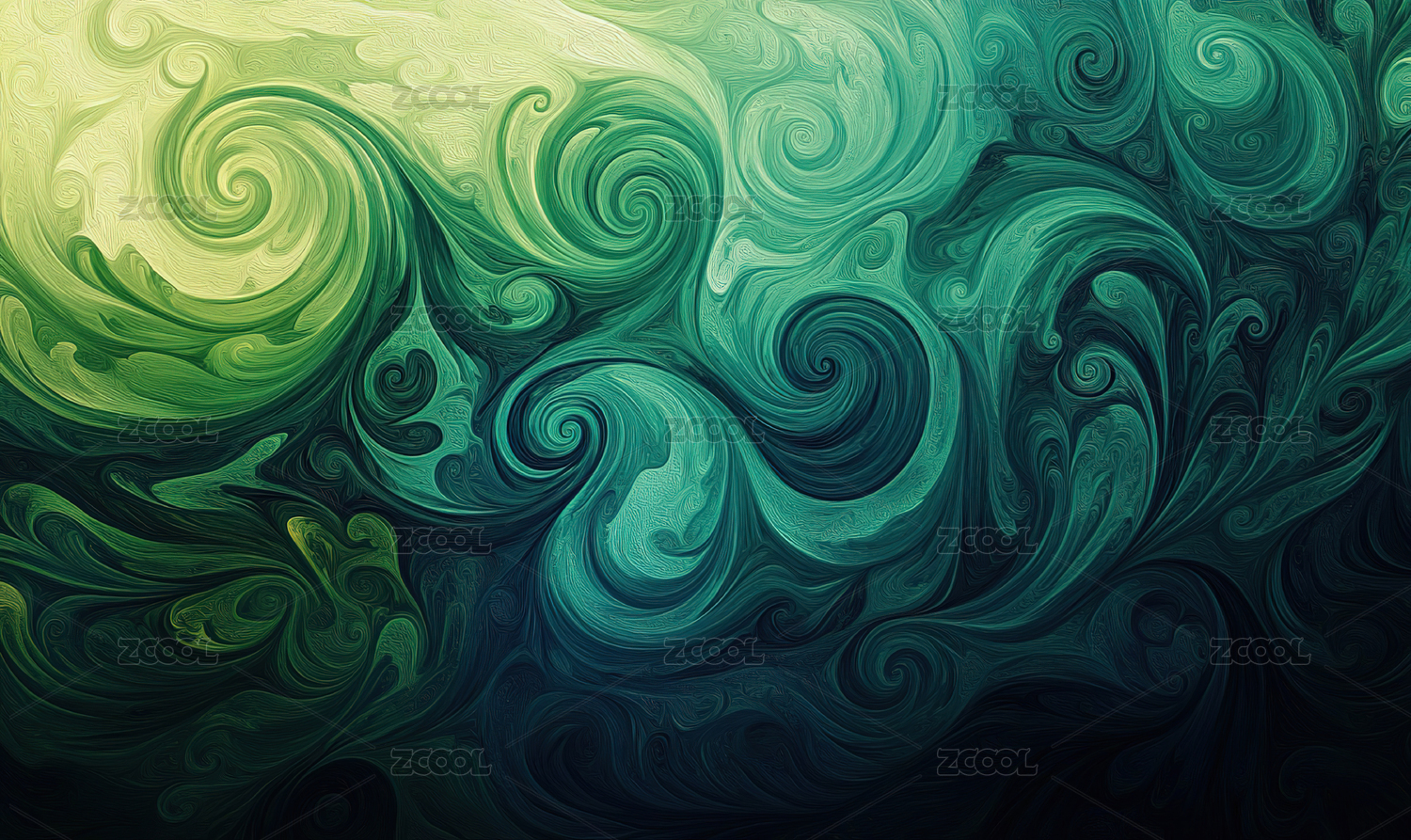 黑色绿色相间的液体颜料纹理背景