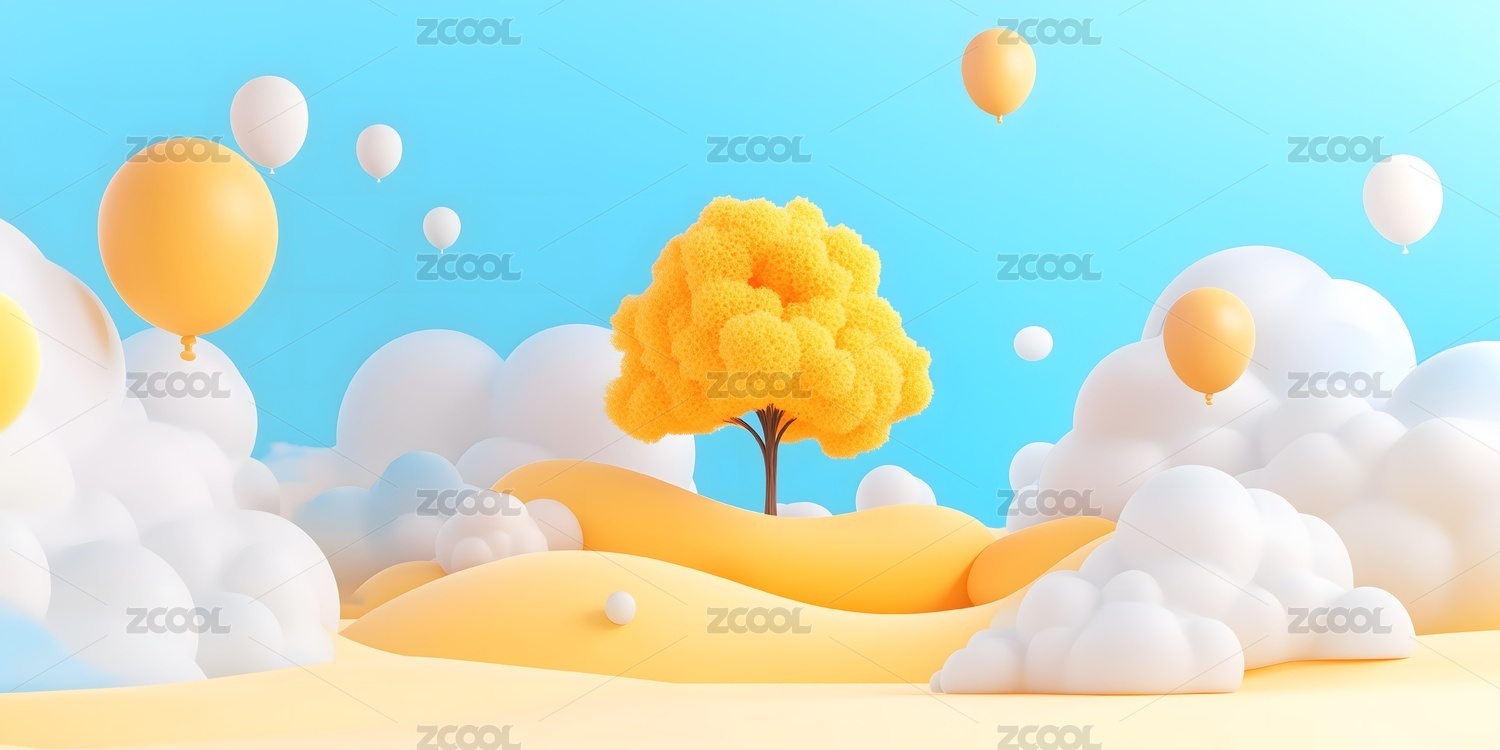 梦幻般的黄色树与气球