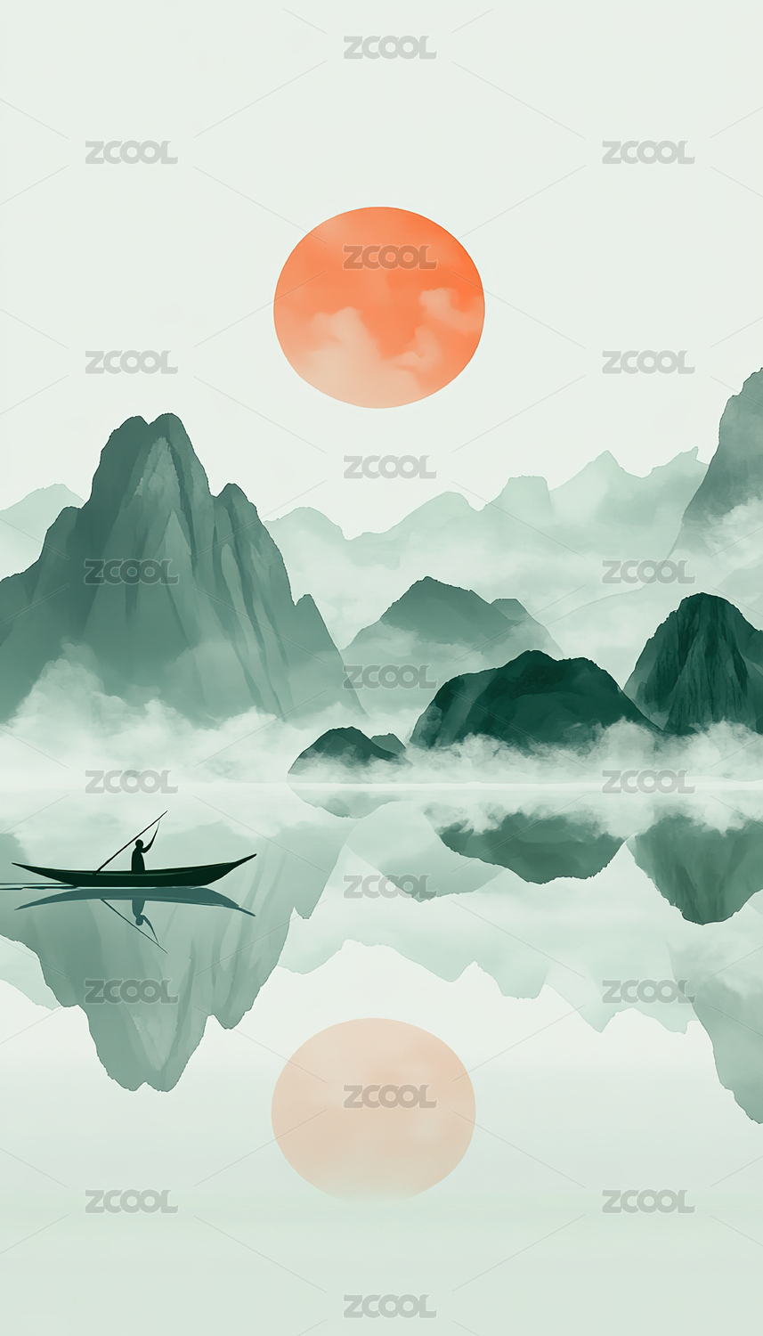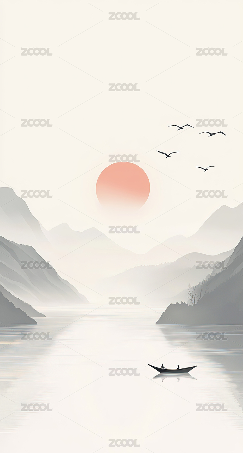 自然,中国画,地形,插画,中国文化,写意画,背景,艺术,湖,水墨画