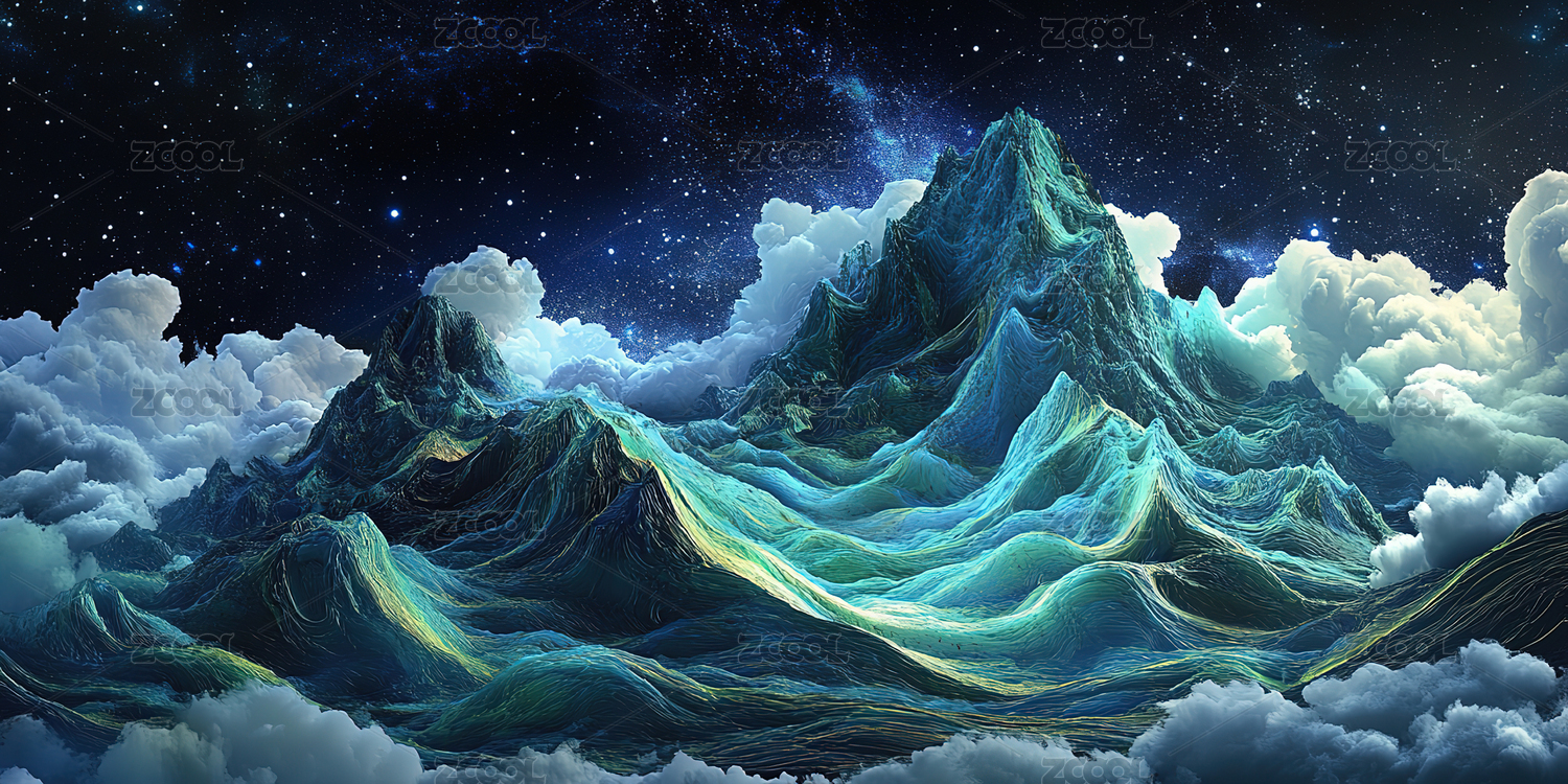 3D渲染山丘山脉高山大山山峰数字艺术插画