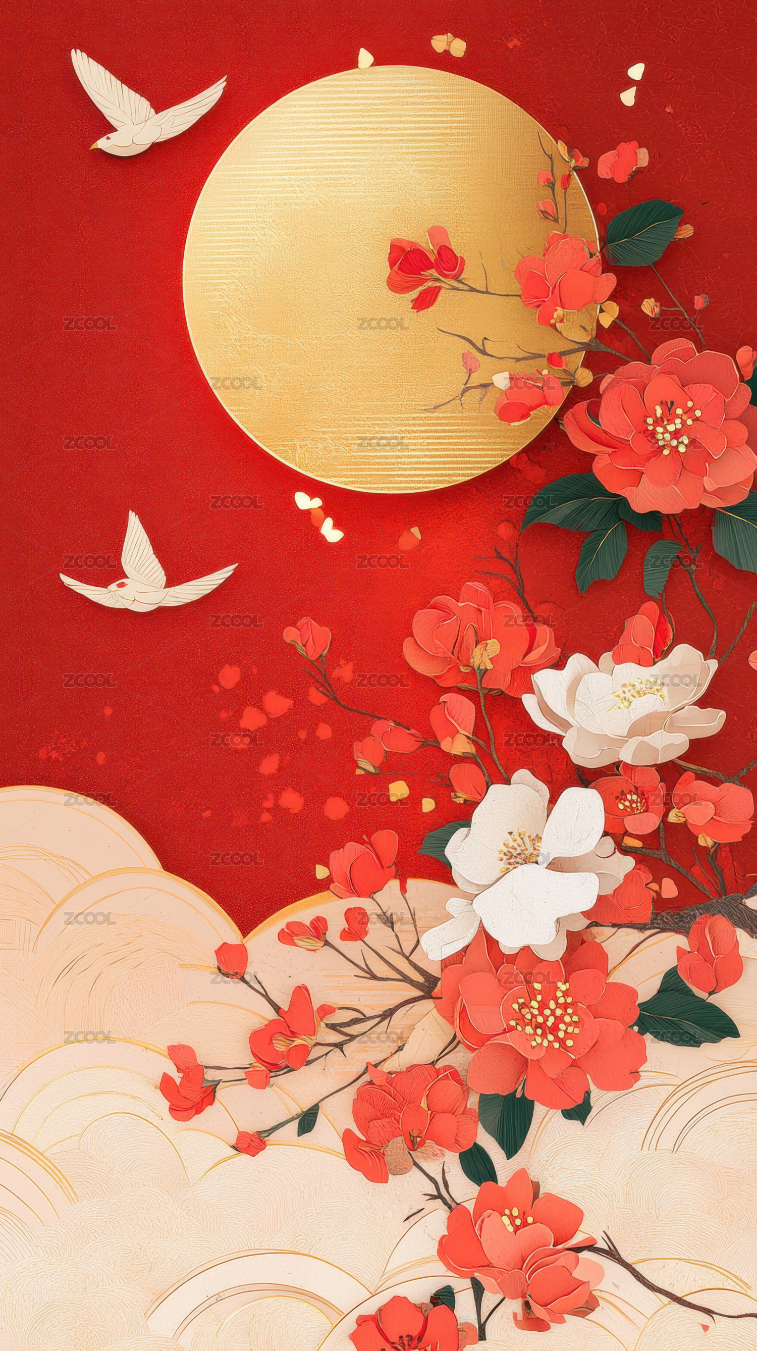 红色背景下的传统节日装饰