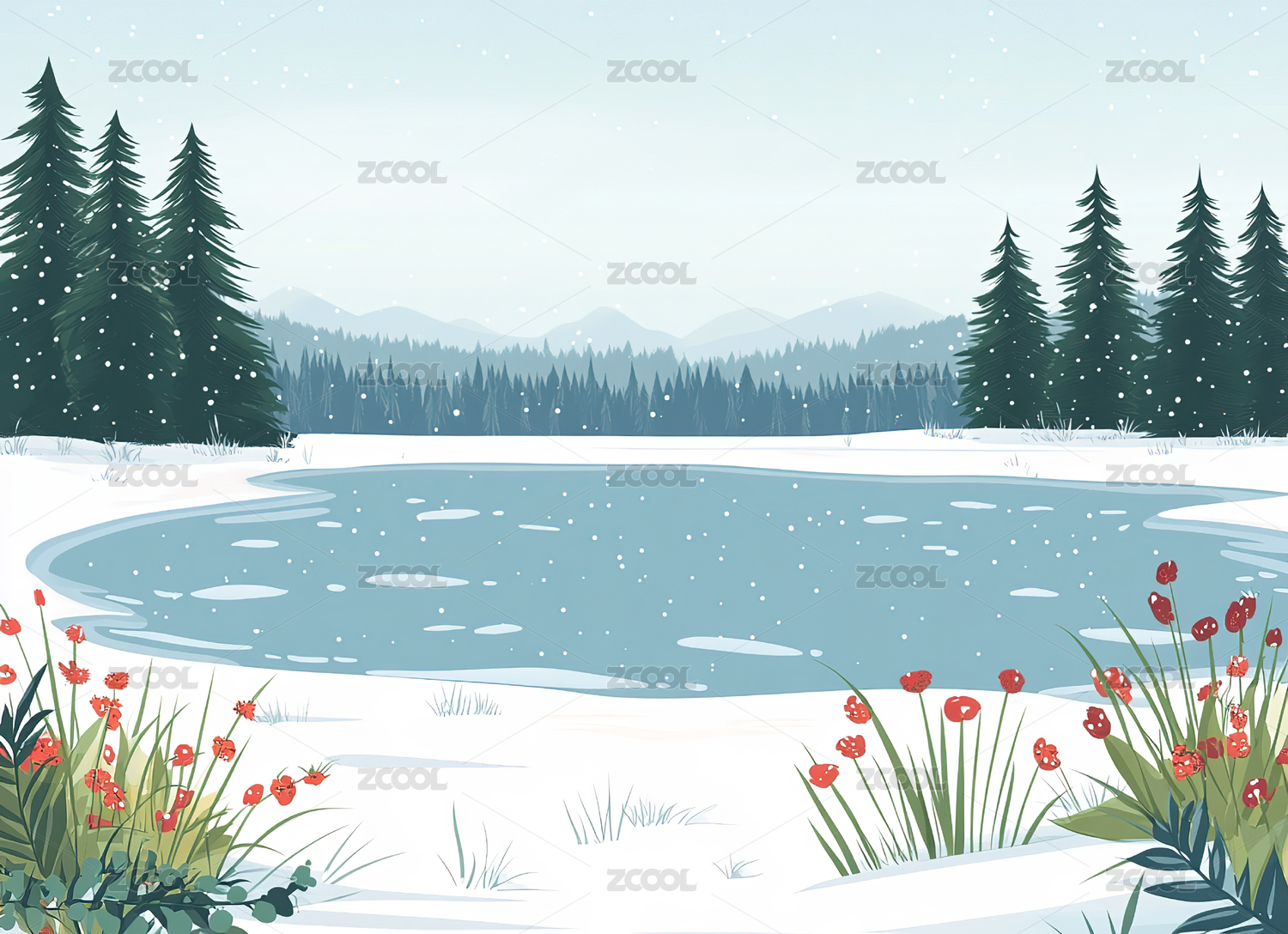 冬天下雪雪地插画海报壁纸背景