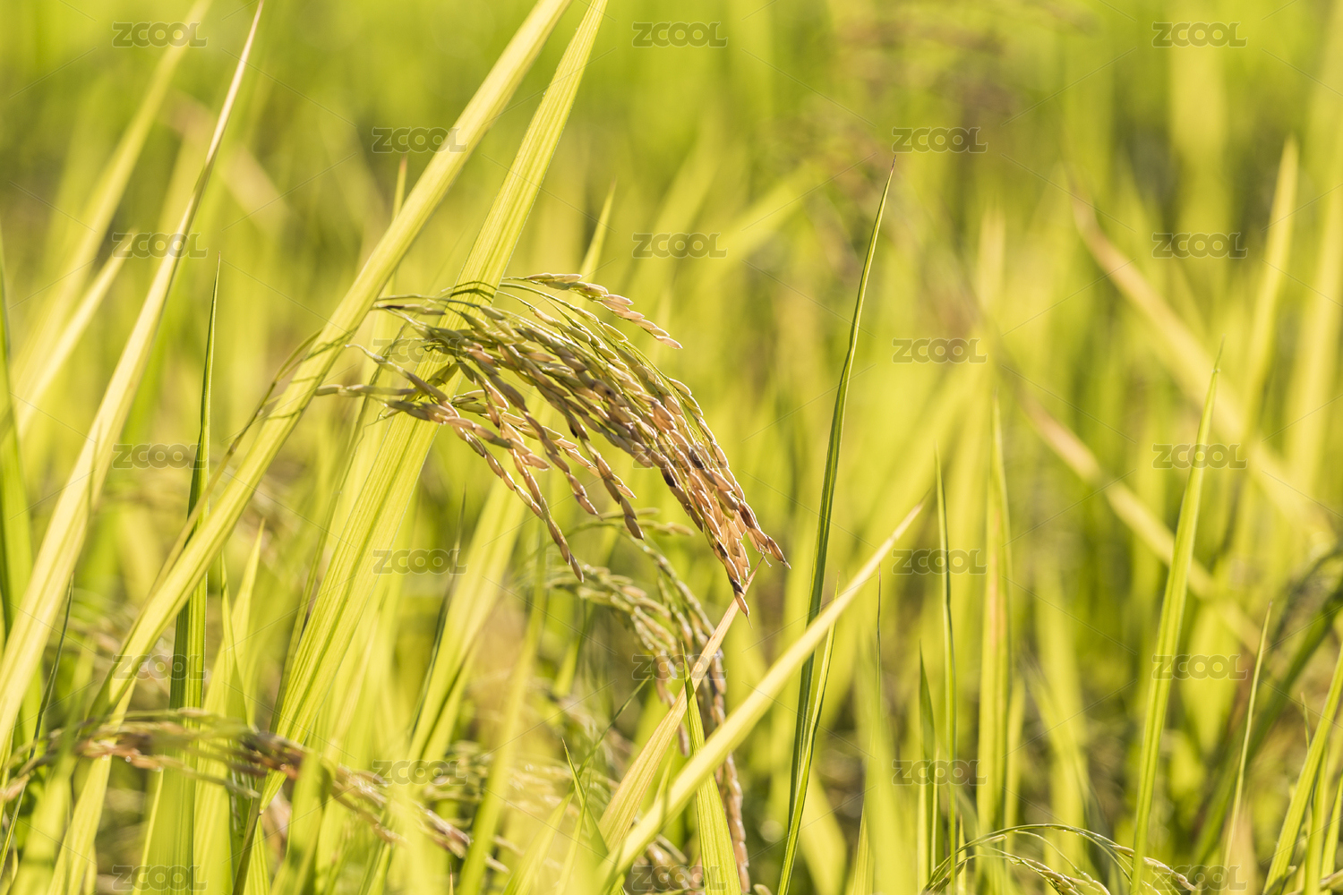 农田未成熟沉甸甸水稻