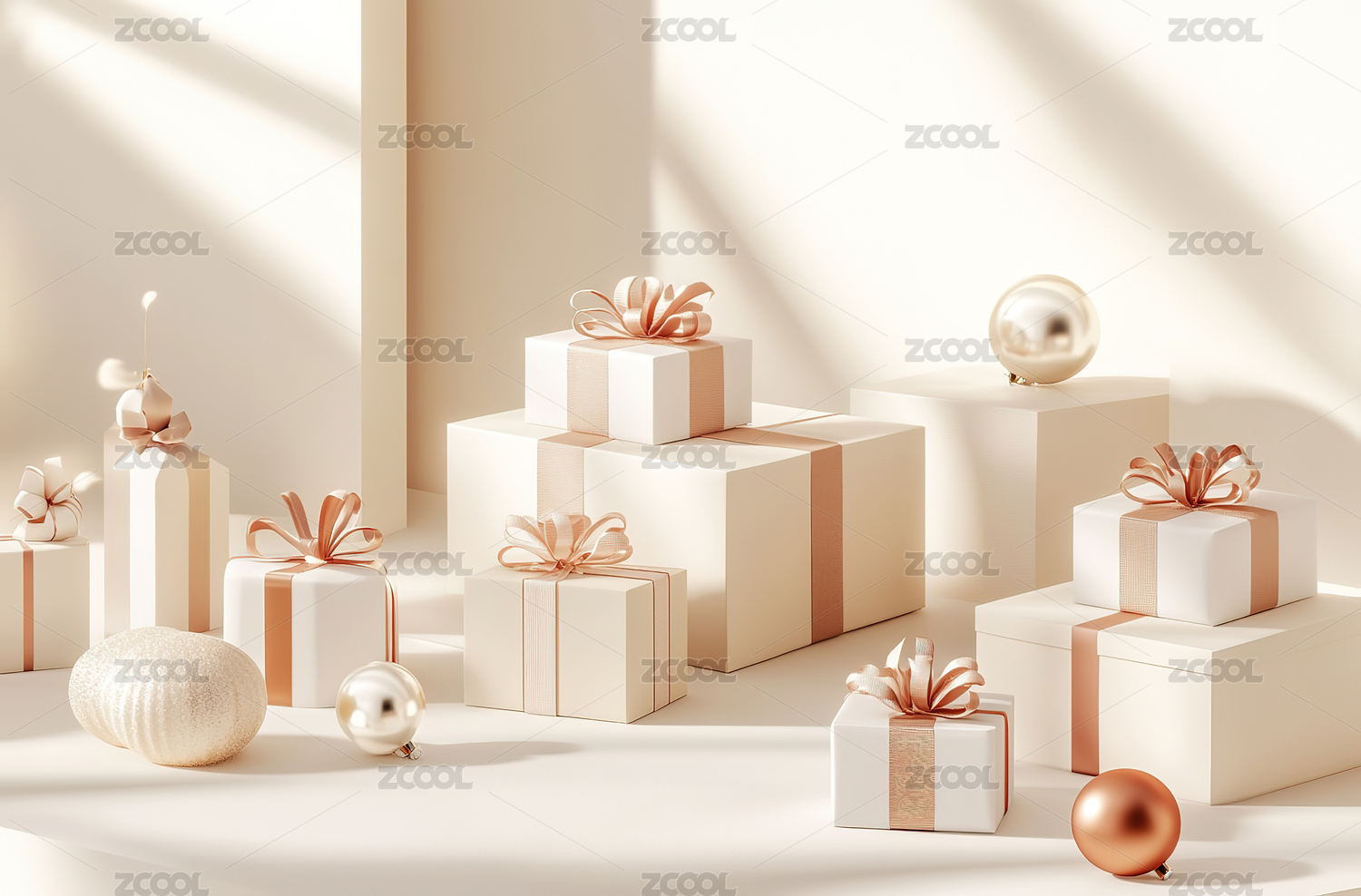 白色背景上的圣诞礼物和礼品盒特写镜头