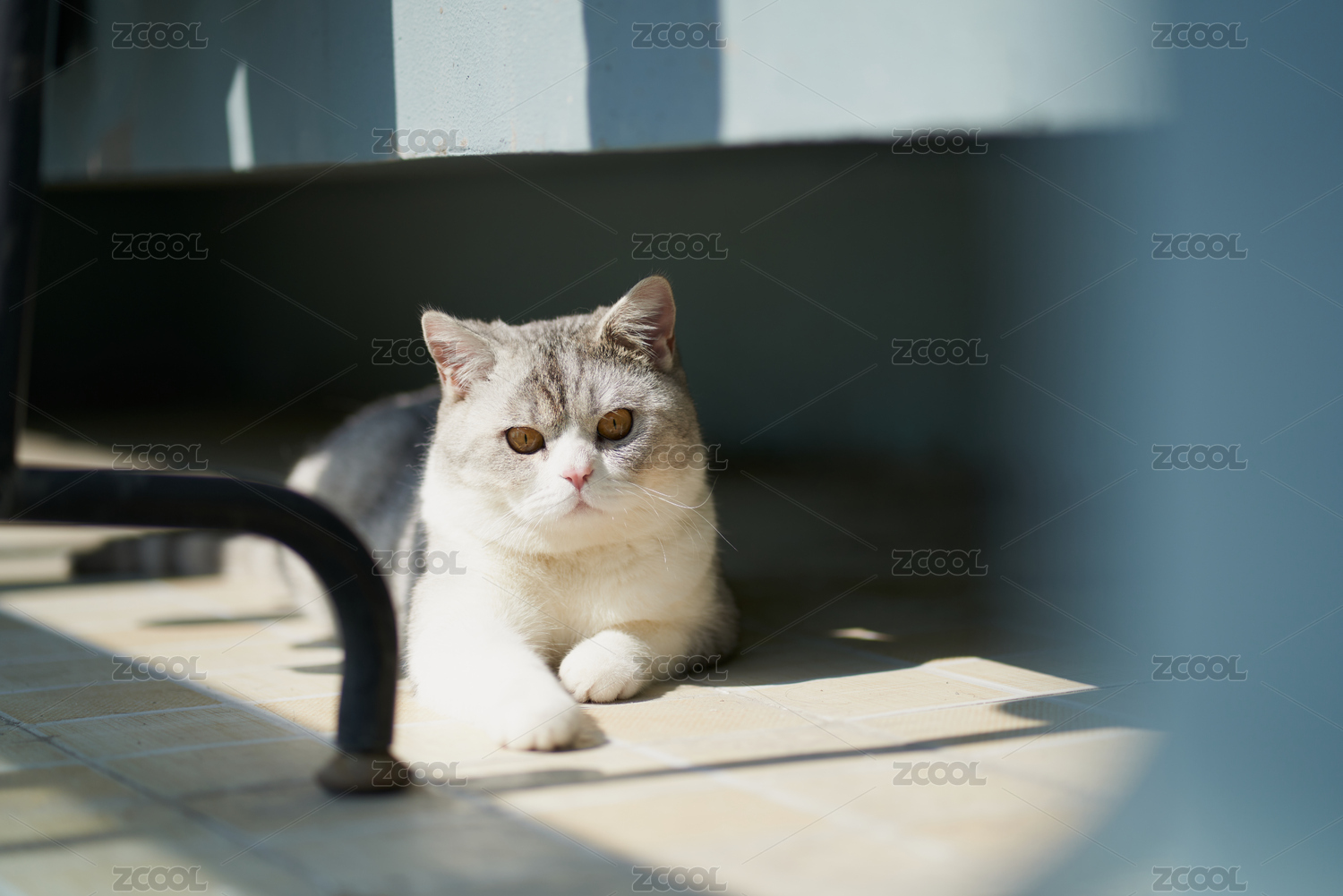 一只,英短,英国短毛猫,可爱,呆萌,小,猫咪,猫,蓝白,窗台