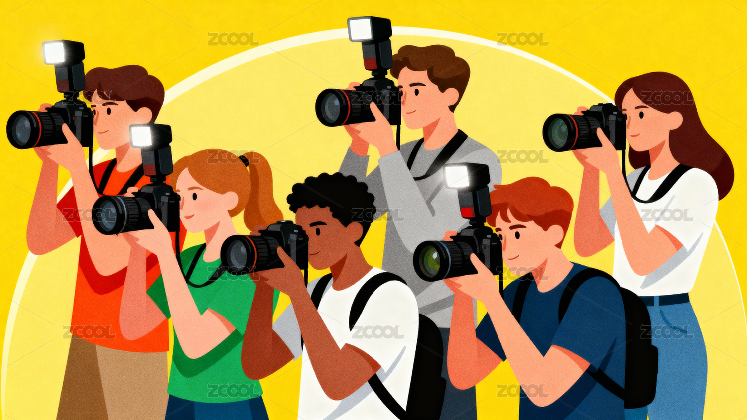 照相,拍照,摄影,人物,剪影,动作,插画,卡通