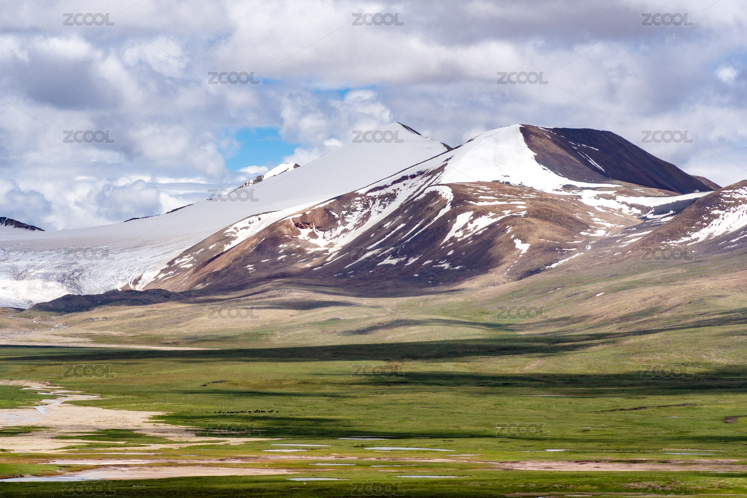 白云,冰川,草地,草原,地貌,东方,东亚,冻土,风景,高寒草原