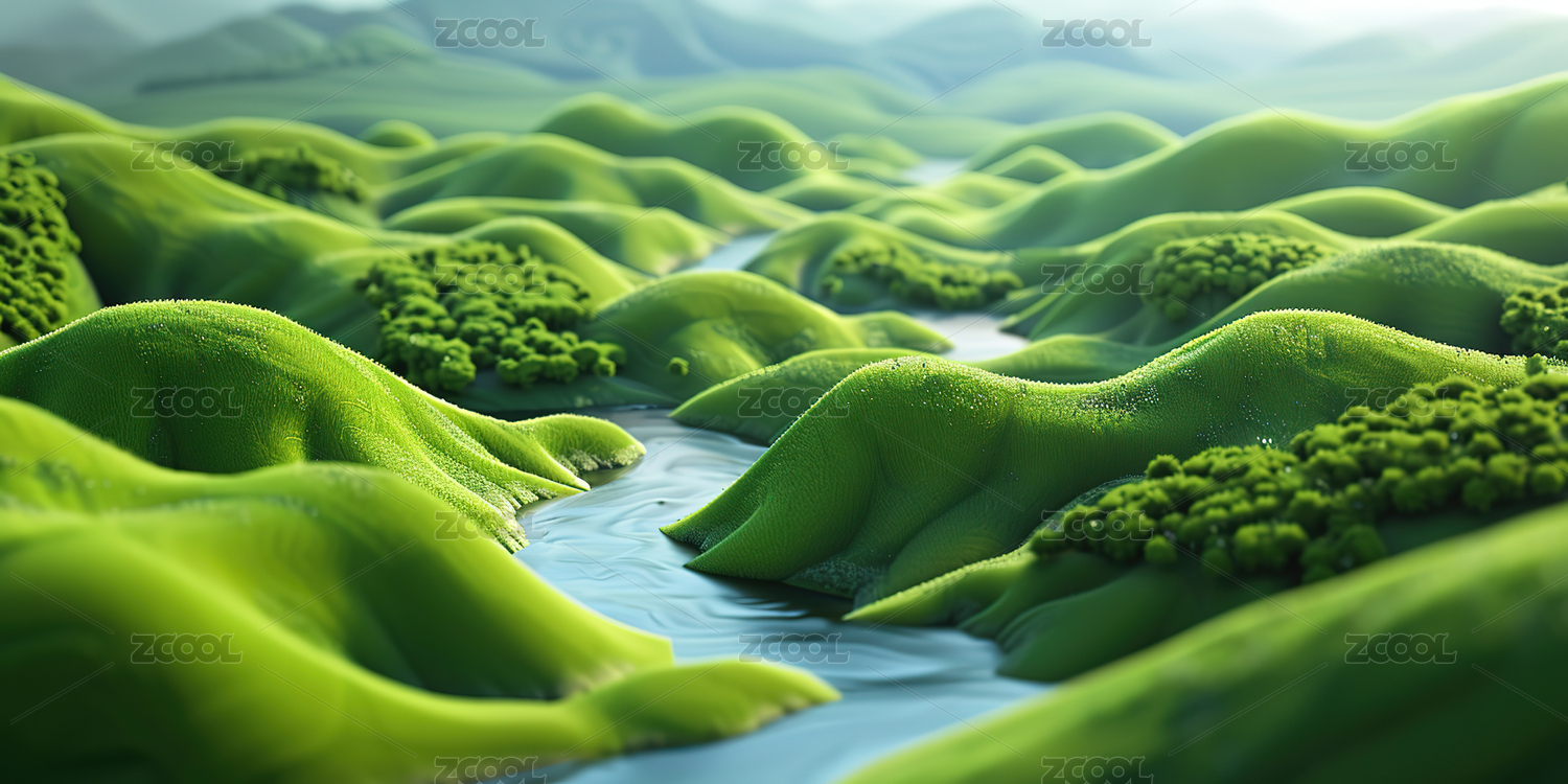 绿茵草地微风拂过,露珠晶莹闪耀在晨光中