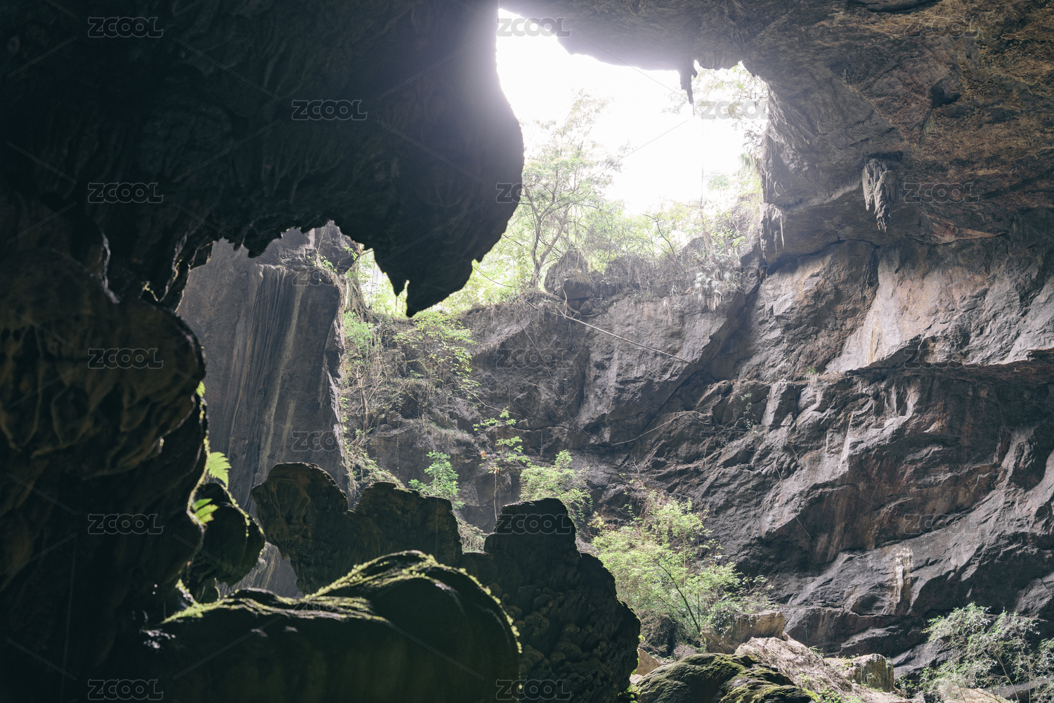 广西喀斯特地貌山洞内部-河池弄响天坑