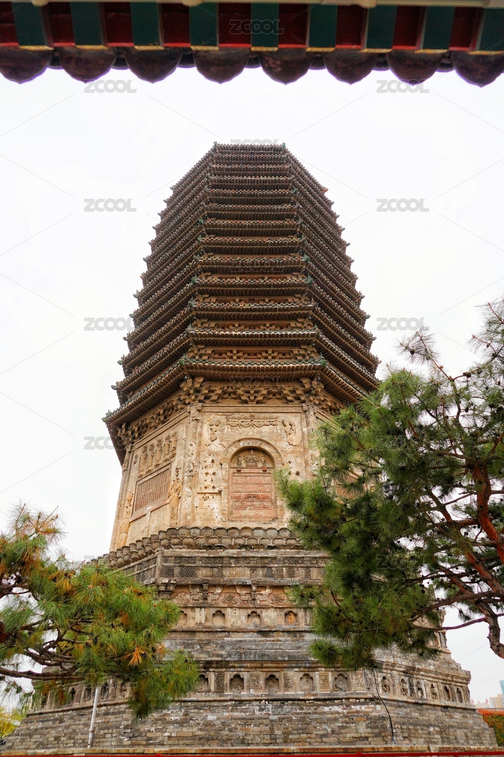 临汾广胜寺飞虹琉璃塔仰视屋檐,精致的工艺
