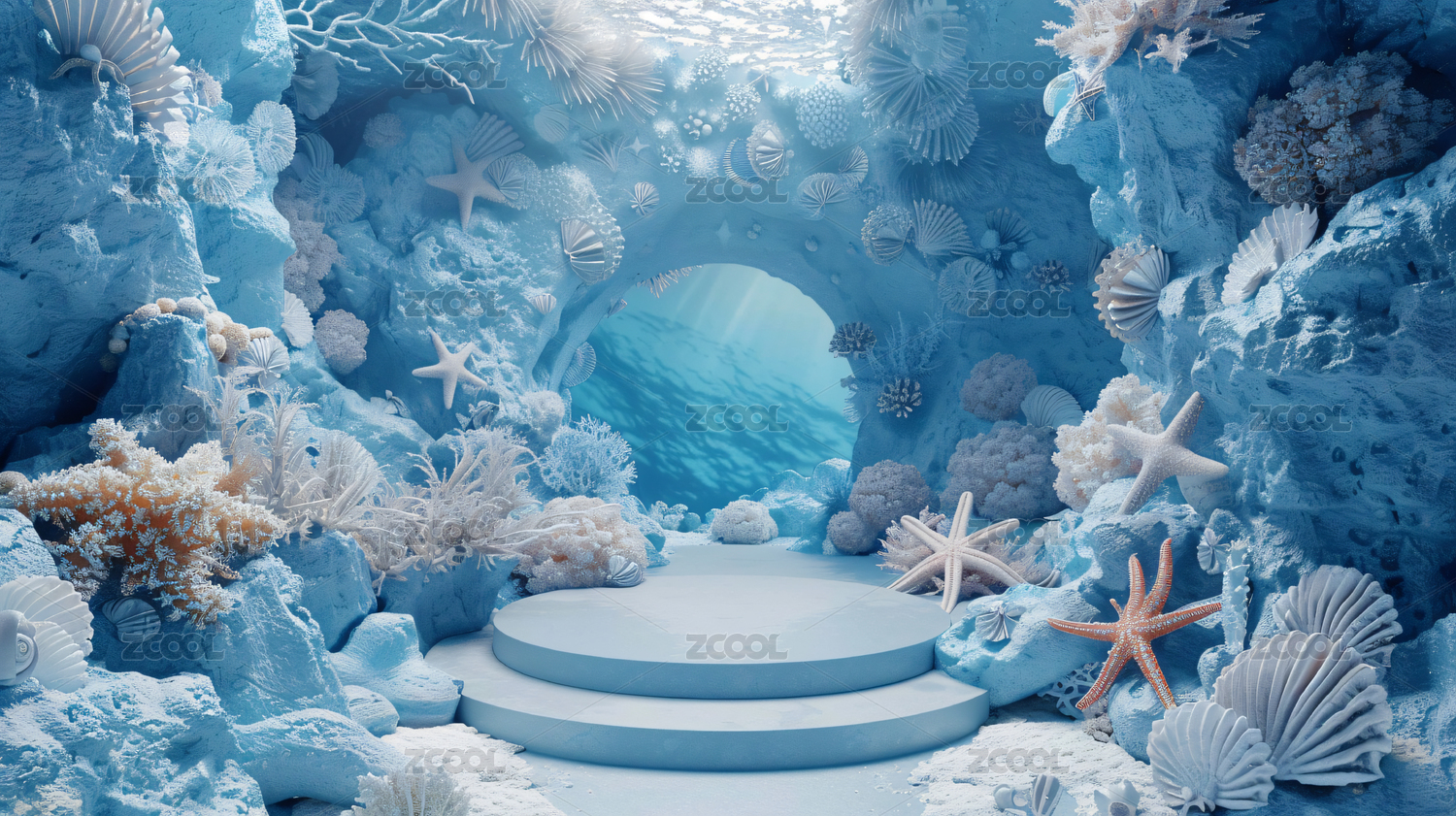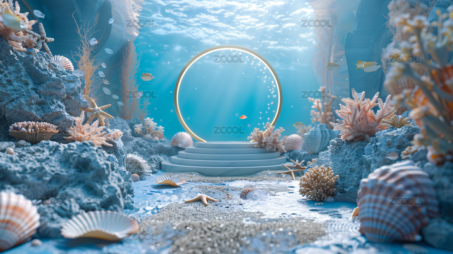 海洋主题清新电商展台3d水晶质感背景